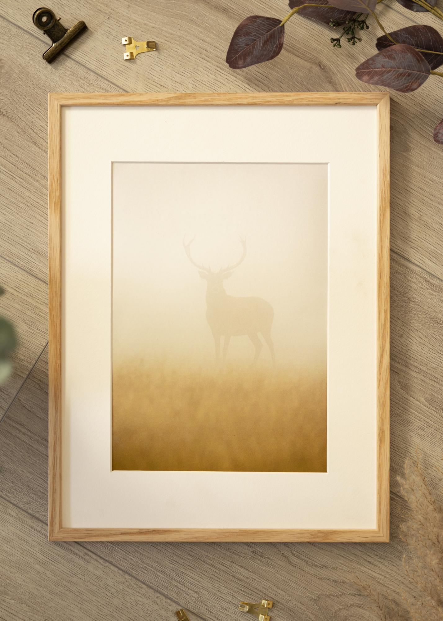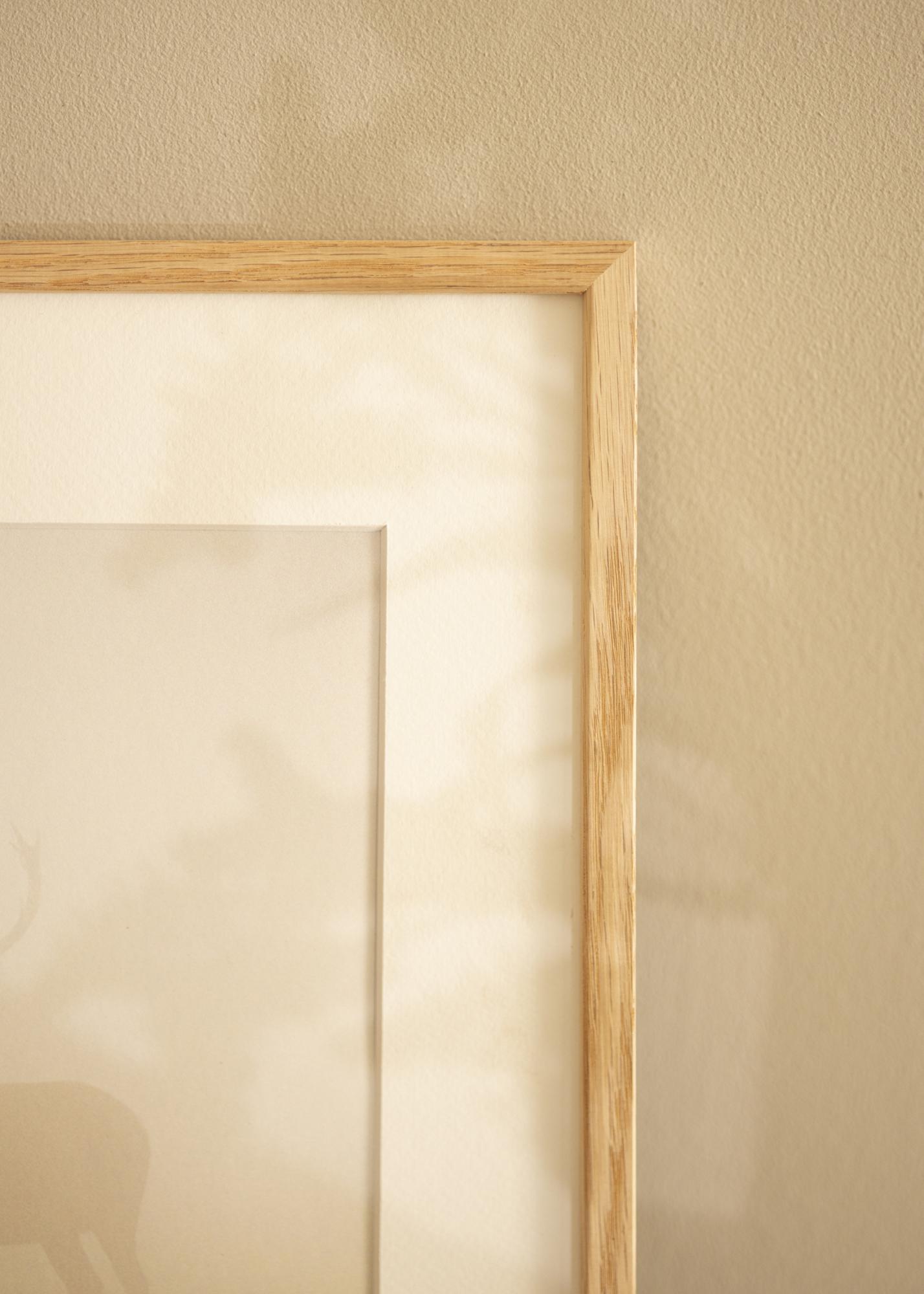 Rám má 12 mm široký rámik, ktorý poskytuje subtílnu, no stále zreteľnú rámovanie vašich obrázkov. S hĺbkou 18 mm vytvára jemný rozmer a pocit hĺbky, čo umožňuje, aby motív skutočne vynikol. Vyrobený z masívneho duba, Táto rám ponúka odolnosť a nadčasovú krásu.