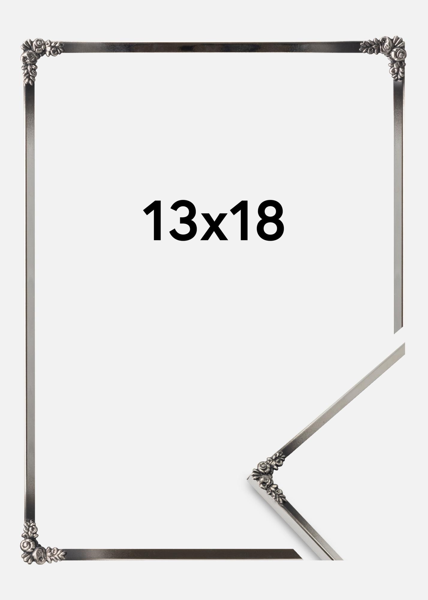 Rosen Metall Striebro je rám v klasickom štýle, kde každý roh je zdobený malými elegantnými ružami. Rám je vyrobený zo strieborného kovu a má ľahko ”popálený” povrch, ktorý pomáha vytvoriť extra štýlový pocit. Na zadnej strane sa nachádzajú nástenné úchyty a zadná opora, čo umožňuje rám umiestniť na stenu aj ako dekoráciu na nábytok.