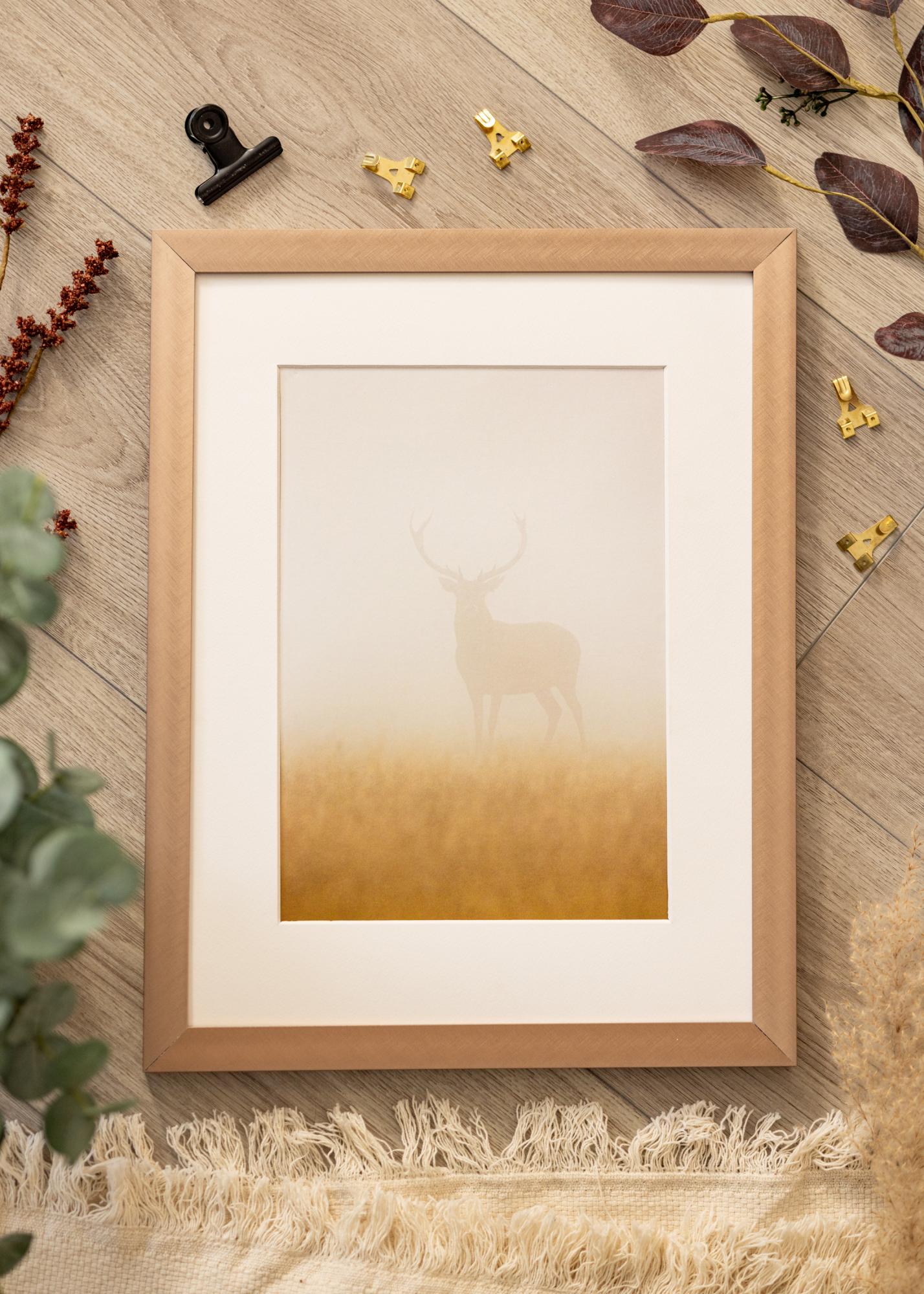 Bronzovo sfarbený minimalistický hliníkový rám, ktorý je pekný na rámovanie čiernobielej fotografie alebo grafického plagátu. So svojou teplou farbou môže byť rám použitý na vyváženie interiéru, ktorý je inak v chladnej farebnej škále, a elegantné prevedenie rámu sa hodí do všetkých štýlov interiéru, ale zvlášť sa hodí do štýlovo čistého severného interiéru. Doplnte rám obrazu paspartou, aby ste ešte viac zvýraznili obraz.
