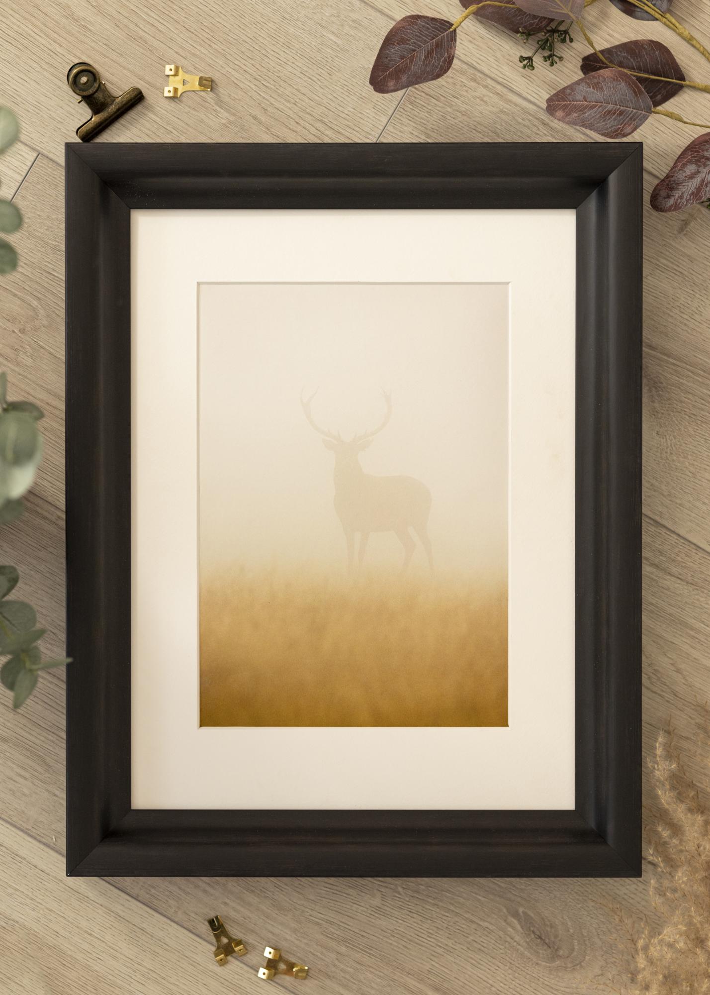 Tradičný rám obrazu v tmavo čiernohnedej farbe, ktorá je bližšie k čiernej než k hnedej. Skvelá voľba, keď hľadáte rám na mieru v tmavom odtieni, kde je vidieť štruktúru dreva.