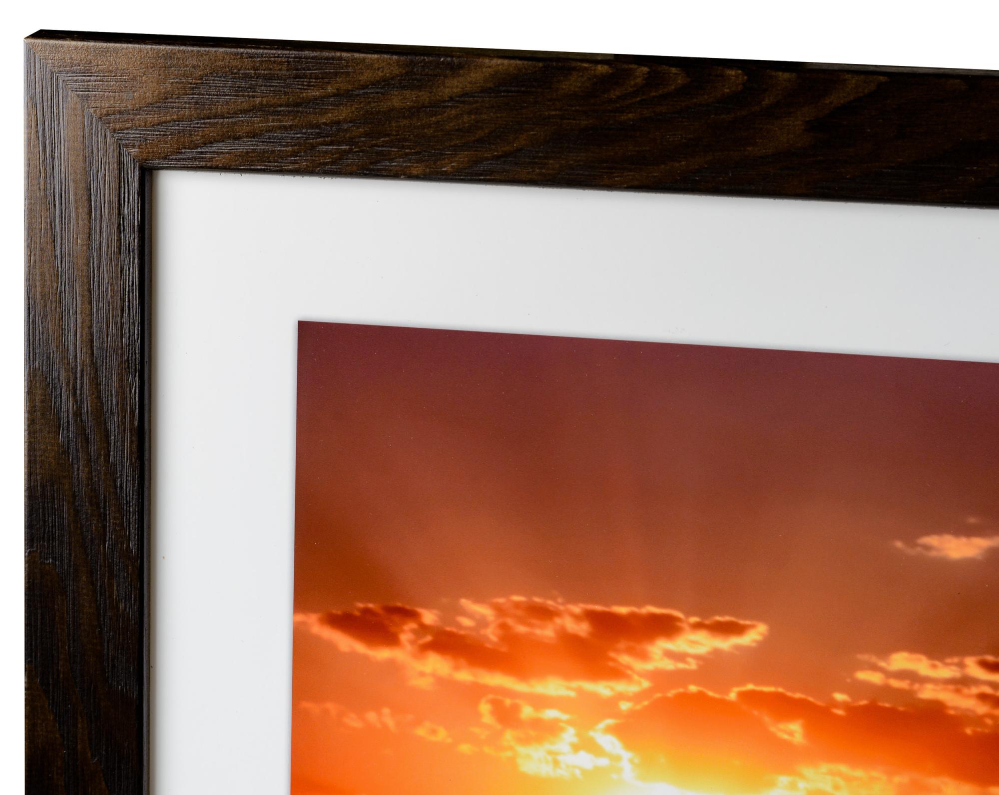 Pevný hnedý drevený rám s viditeľnými drevenými vláknami s širokým profilom. Hodí sa dobre, keď hľadáte tmavý drevený rám s prirodzeným pocitom. Perfektné pre fotografické obrazy a krajinné obrázky.