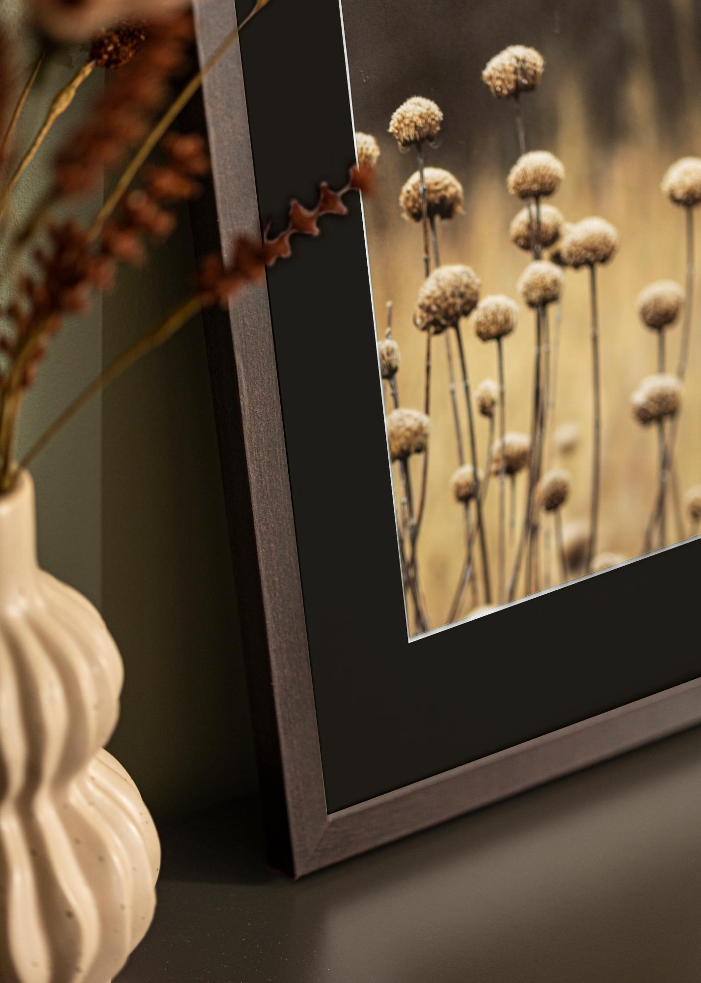 Povyšte svoje umenie s elegantným rámom s čiernym paspartom. Toto sofistikované riešenie pre zarámovanie je ideálne pre zvýraznenie vášho obrazu formátu A3 (29,7x42 cm) a dodanie profesionálneho vzhľadu. Rám, v elegantnej drevenej farbe, má šírku a hĺbku 18 mm, ktoré vytvárajú výrazný okraj okolo umeleckého diela.