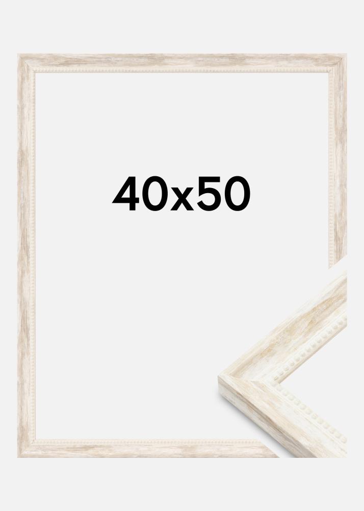 Táto krásny rám vo farebnej bielej je dokonalou kombináciou rustikálneho šarmu a elegantnej čistoty. So svojou veľkosťou 40 x 50 cm je ideálny na zdôraznenie vašich obľúbených motívov, či už sú to umelecké diela alebo fotografie. Rám má dekoratívny perlový lem po vnútornej strane, čo mu dodáva klasický a detailne prepracovaný dizajn, ktorý sa hodí do moderných aj tradičných interiérov.