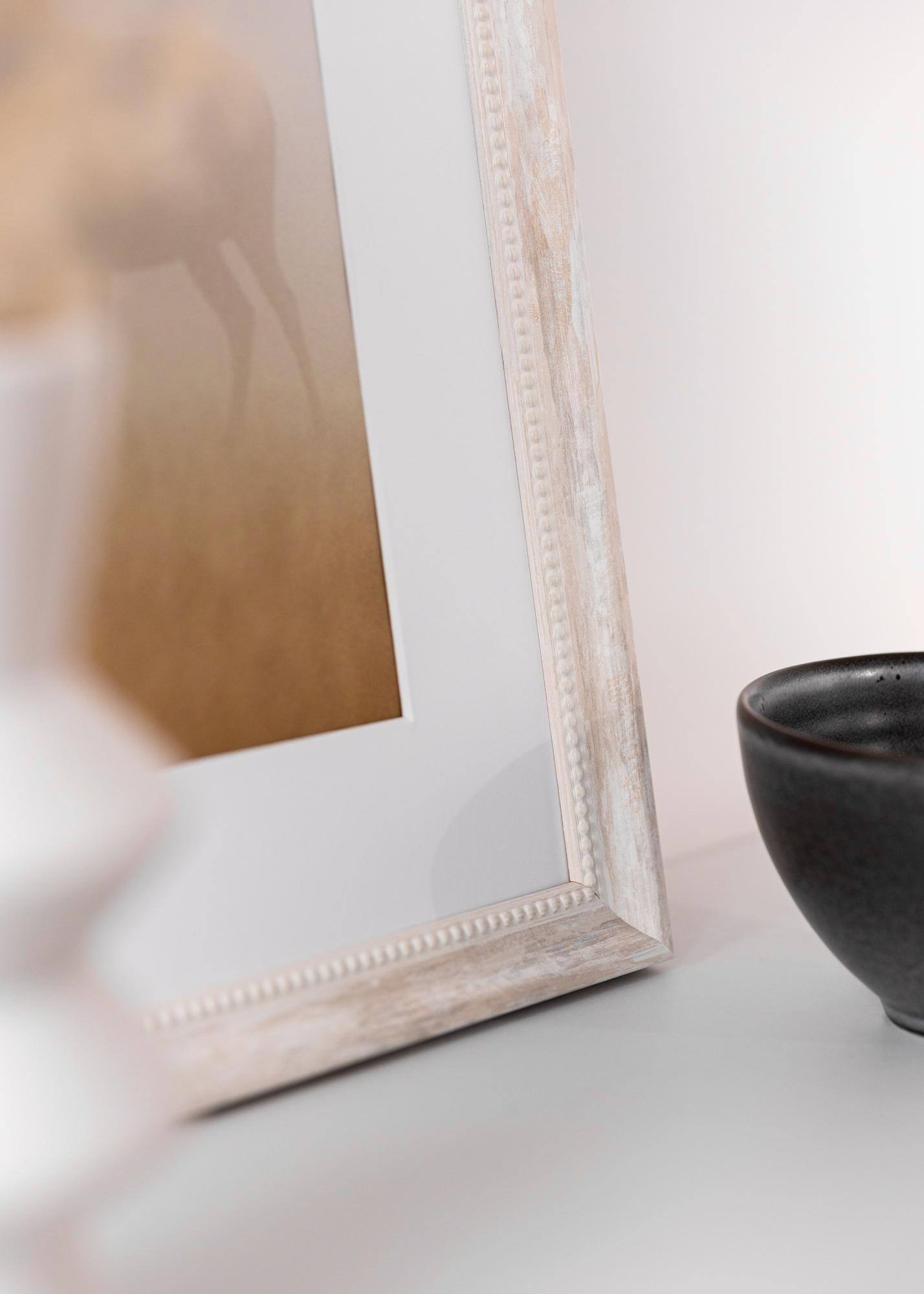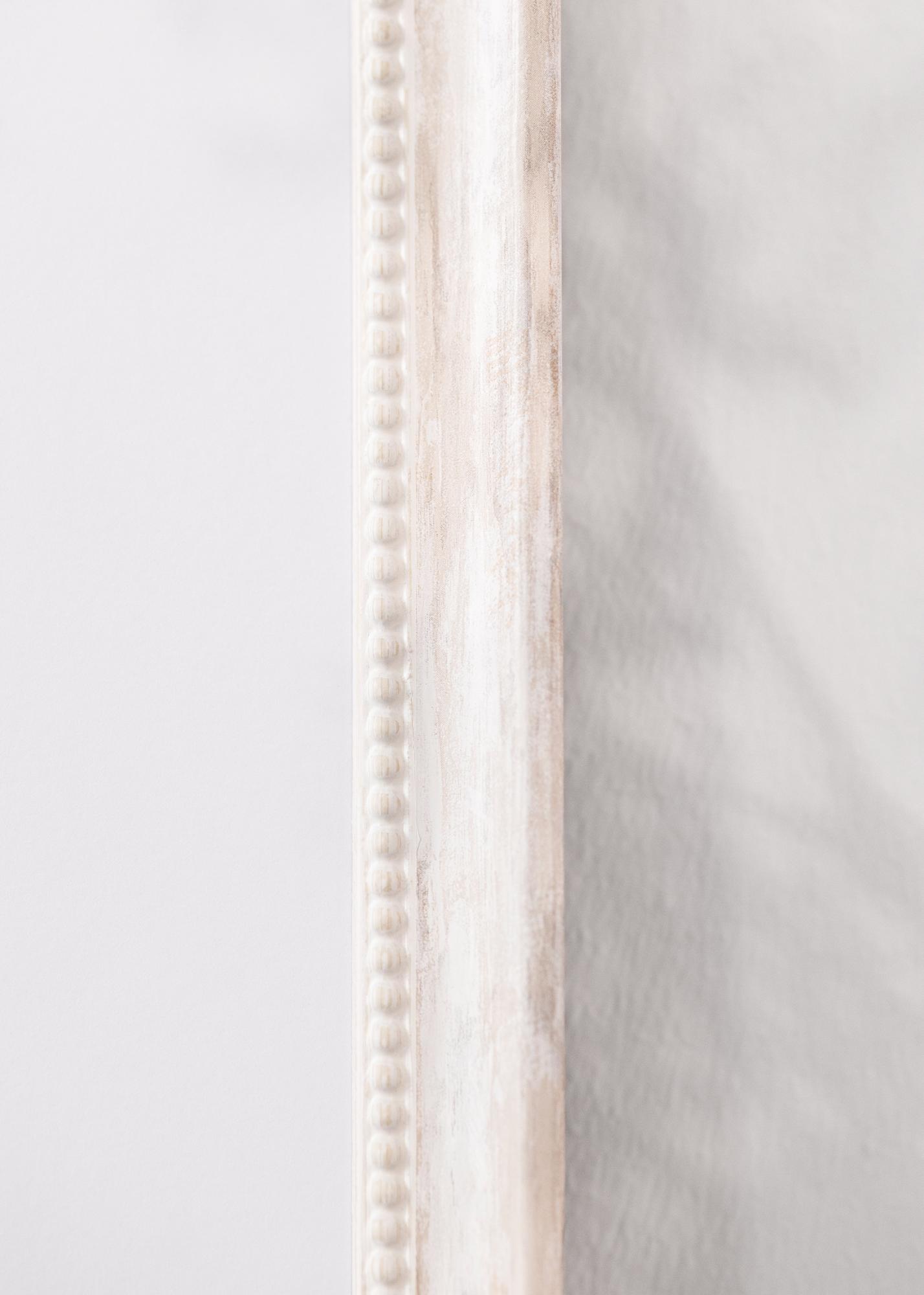 Táto krásna rám v rozmeroch 59,4x84,1 cm je dokonalou kombináciou rustikálneho šarmu a čistého elegancie. So svojou bielou farbou a dekoratívnou perlovou hranou pozdĺž vnútornej strany ponúka jemný antický pocit, ktorý zvýrazní umelecké diela aj fotografie. Táto rám na obrazy je vyrobený z dreva a má 25 mm široký rámový profil a hĺbku 19 mm, čo mu dodáva robustný a stabilný vzhľad.