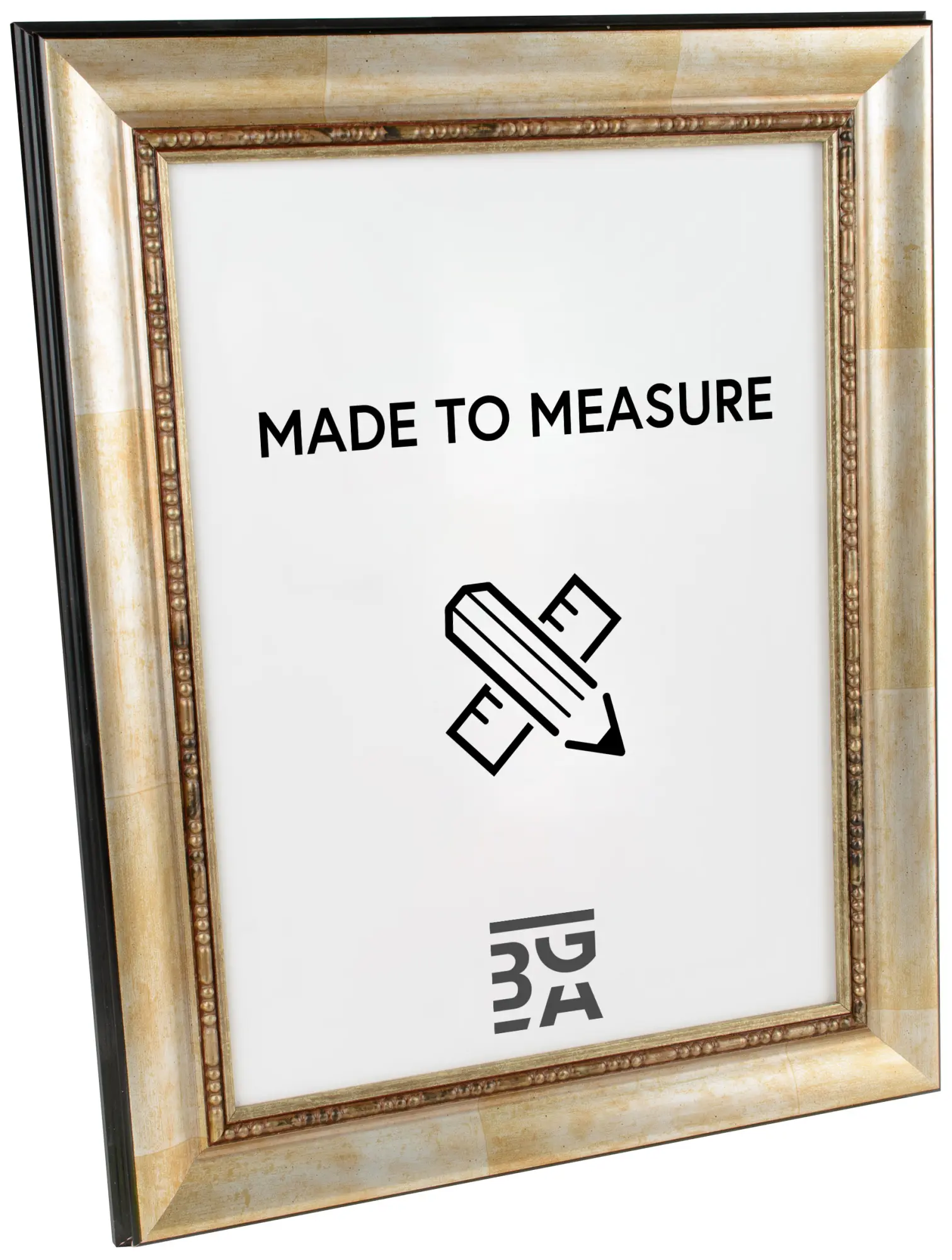 Klasický portrétový rám na obrázky, ktoré máte obzvlášť radi. Rám má čierne strany s profilovanou striebornou farbou na prednej strane s dekoráciami najbližšími k motívu.