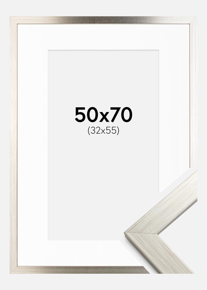 Rám Strieborná Wood 50x70 cm - Pasparta Biela 33x56 cm