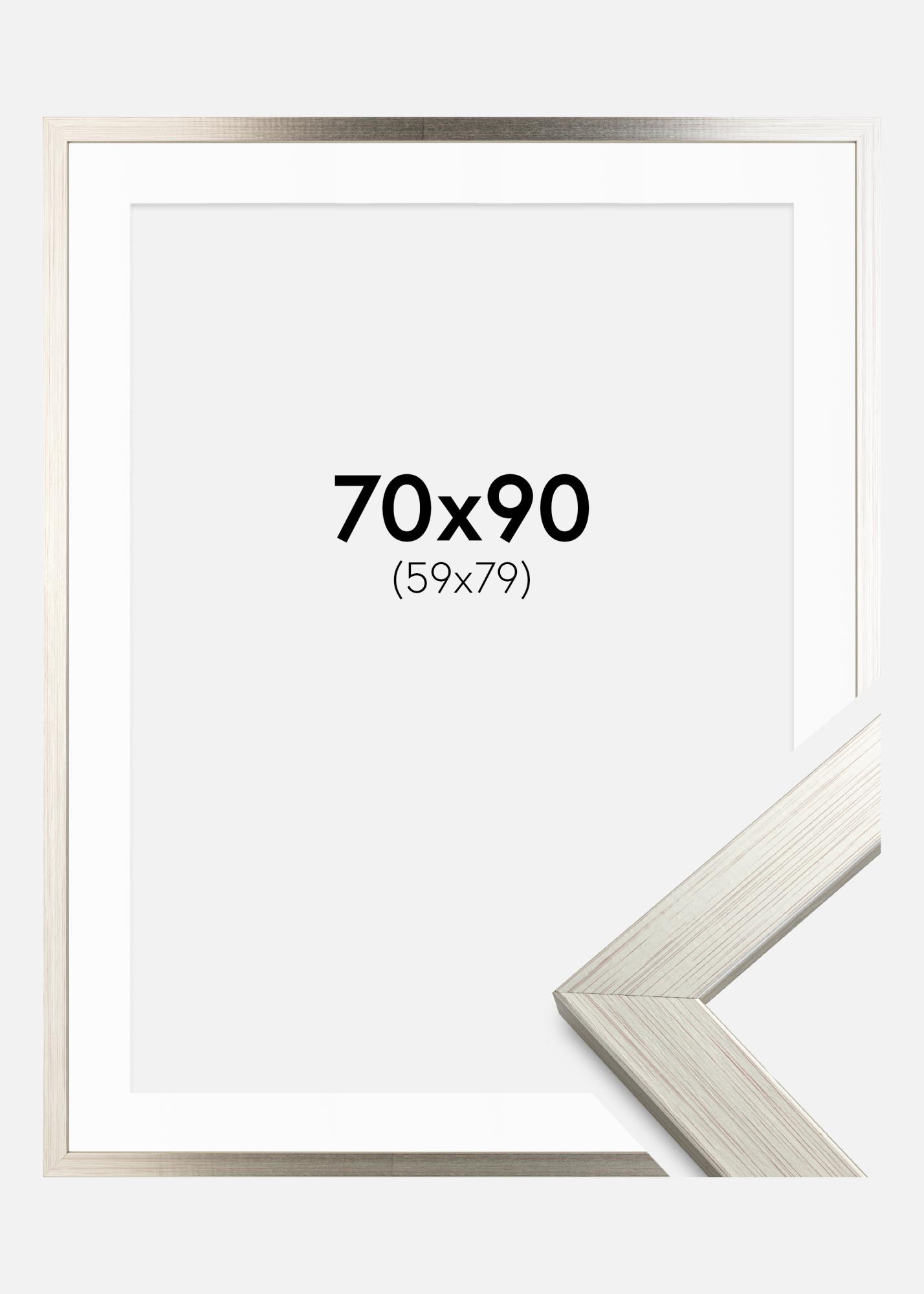 Rám Strieborná Wood 70x90 cm - Pasparta Biela 60x80 cm