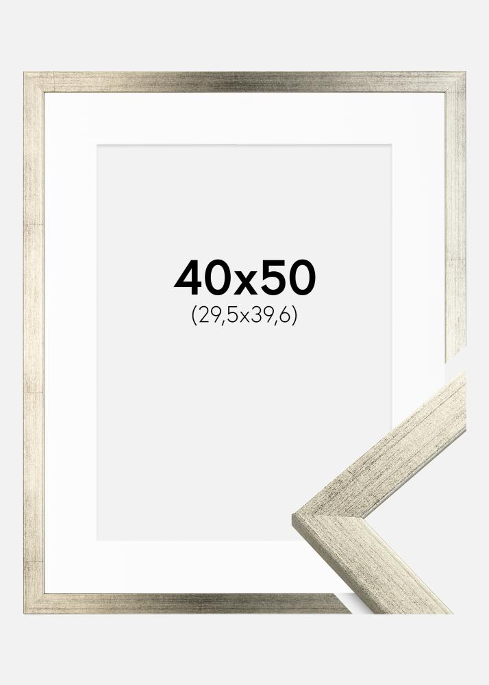 Rám Štýlová Strieborná 40x50 cm - Pasparta Biela 12x16 inches