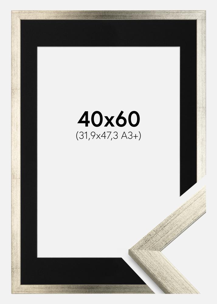 Rám Štýlová Strieborná 40x60 cm - Pasparta Cierna 32,9x48,3 cm (A3+)