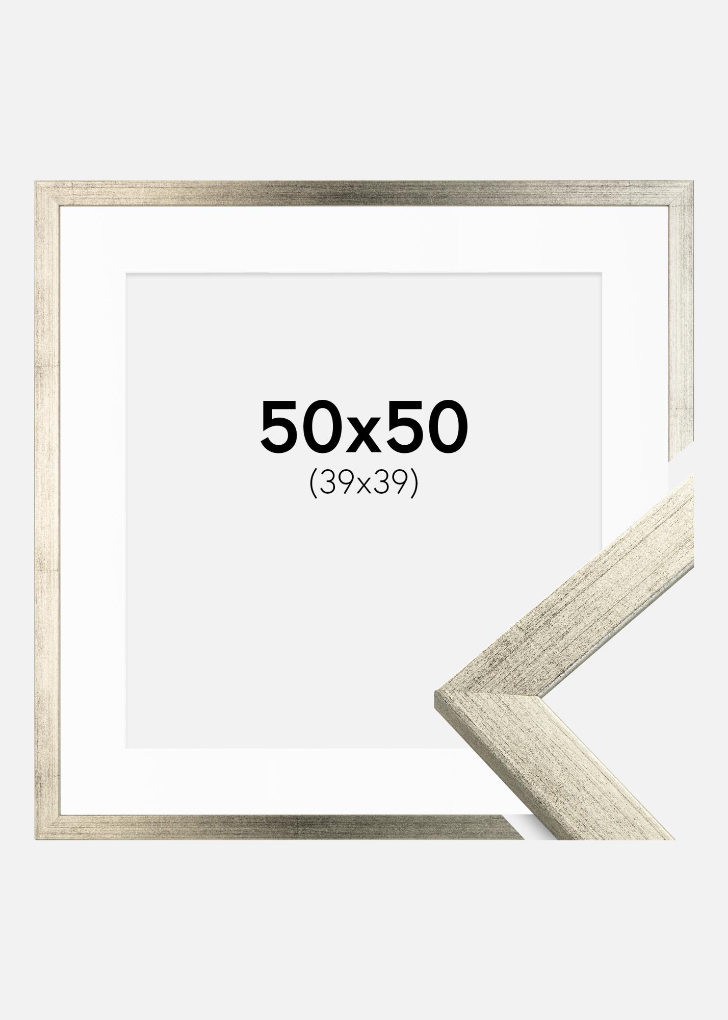 Rám Štýlová Strieborná 50x50 cm - Pasparta Biela 40x40 cm