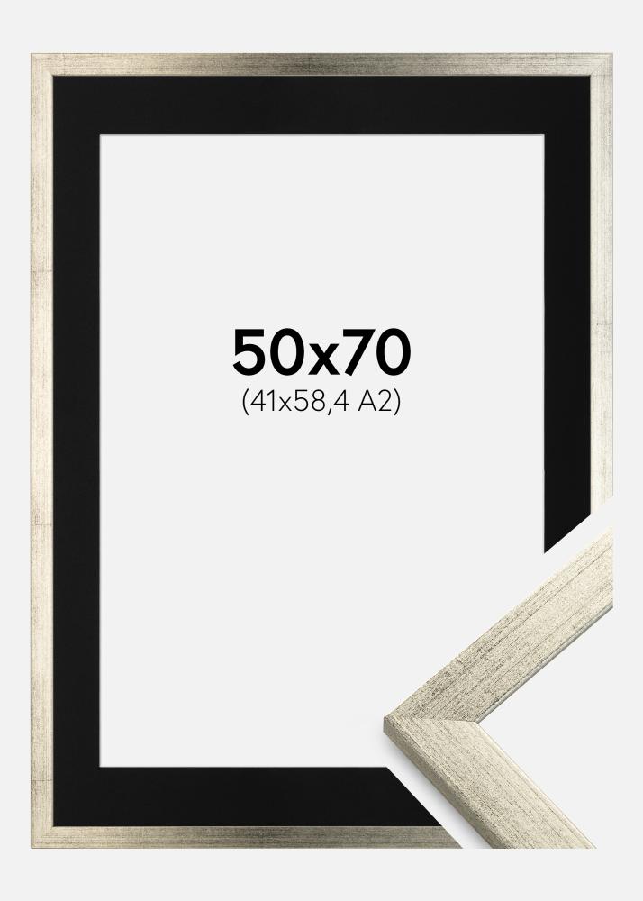Rám Štýlová Strieborná 50x70 cm - Pasparta Cierna 42x59,4 cm (A2)