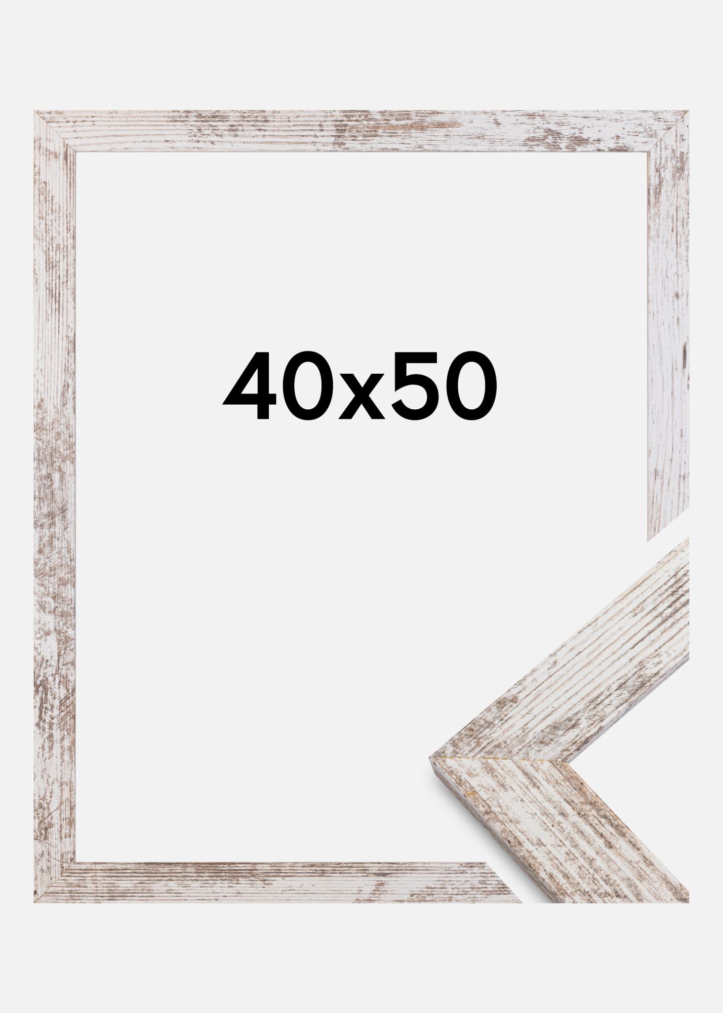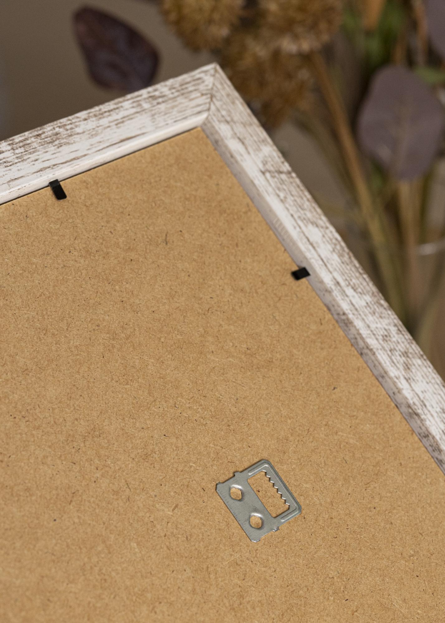 Štýlový vintage rám so širokým profilom rámu s opotrebovaným vzhľadom v bielej a dreve. Poskytuje extra dimenziu pre vaše obrázky a perfektne sa hodí, keď chcete mať rám s autentickým vintage pocitom.