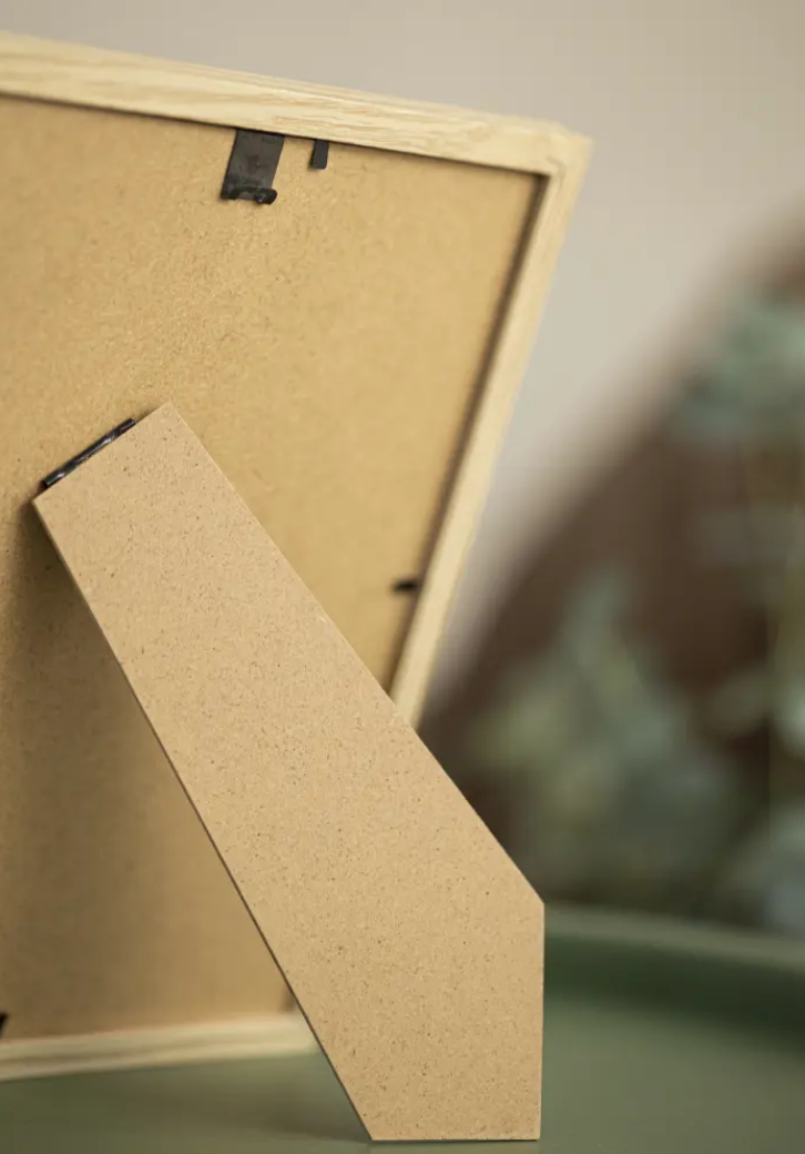 Rám je vyrobený z MDF materiálu s fóliovaným povrchom v dubovej farbe a má tenký rámový profil s veľkosťou 14 mm. Je tu dostatok priestoru na doplnenie vašich obrázkov luxusným passepartout, vďaka vnútornému hĺbeniu rámu (falzová hĺbka) 12 mm.