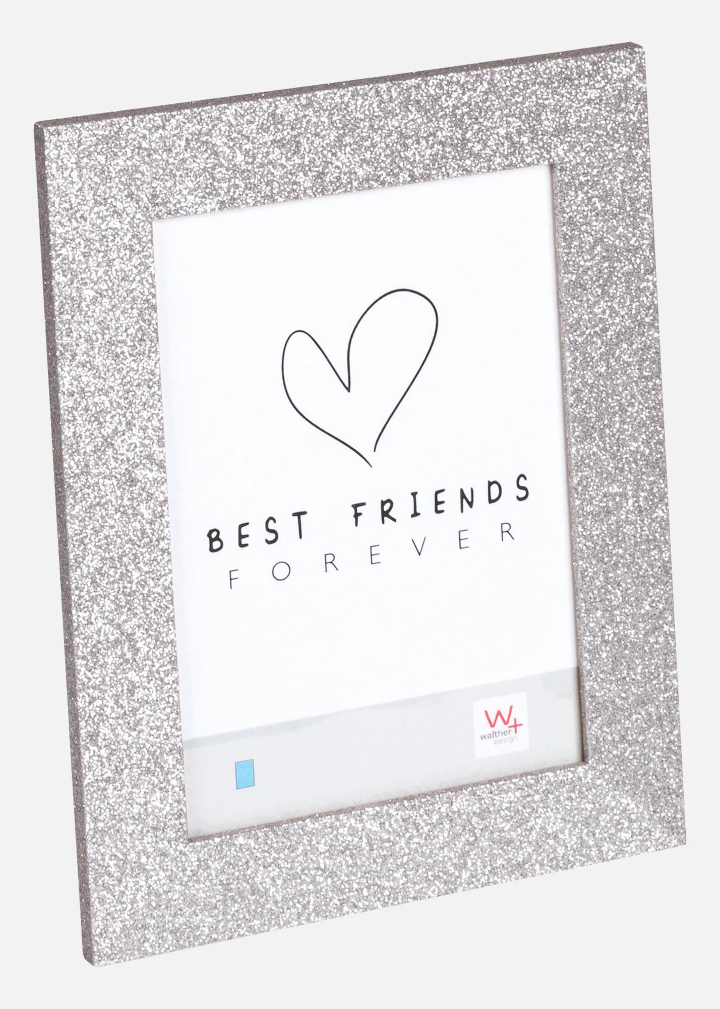 Rám Twinkle Silver 10x15 cm je žiarivý rám, ktorý kombinuje eleganciu a pôvab úžasným spôsobom. Široký okraj s trblietavým povrchom krásne odráža svetlo a dodáva vašim obrázkom luxusný pocit.