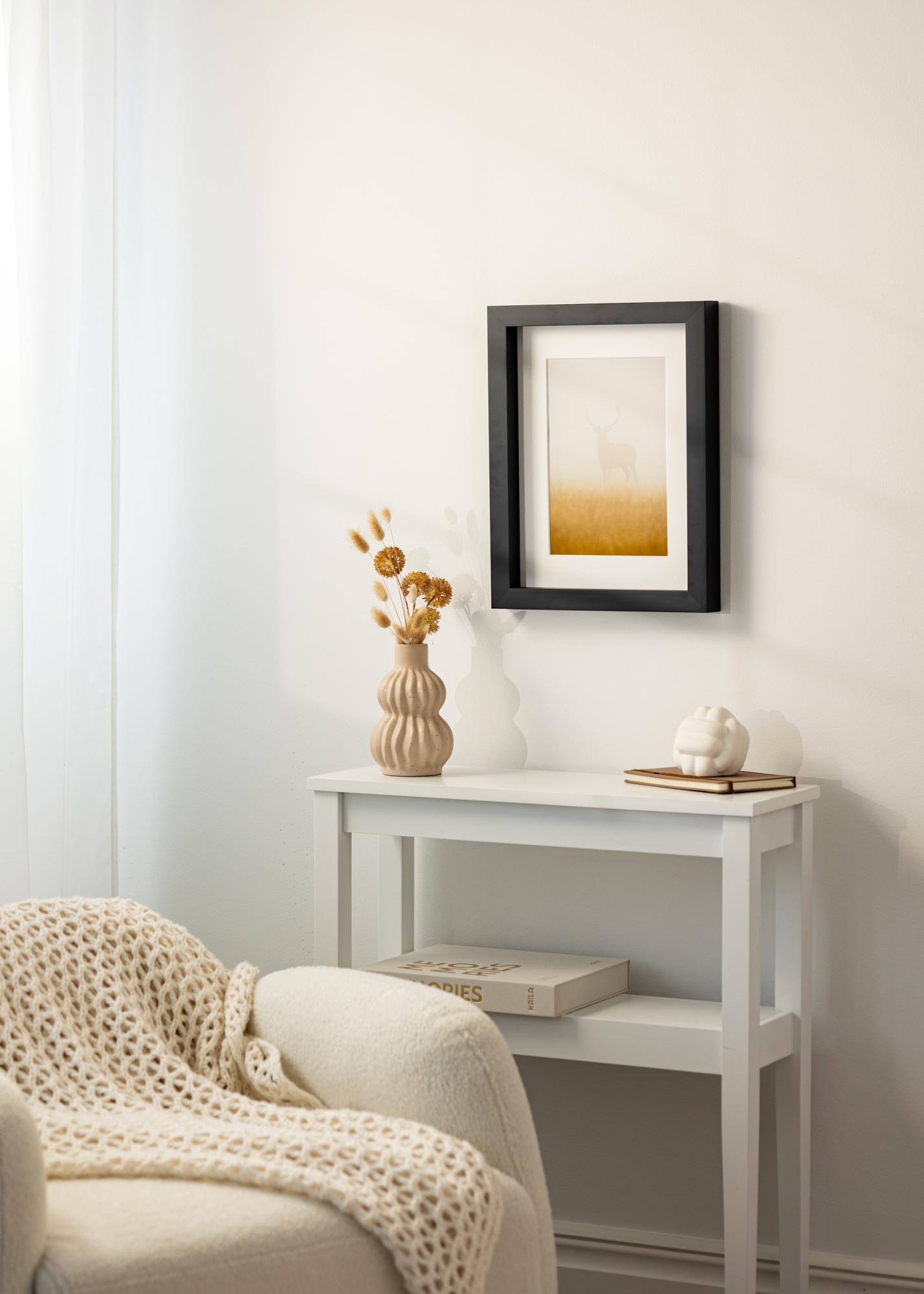 Rám má 30 mm široký rámový zoznam a hĺbku 50 mm, čo mu dodáva robustný a silný pocit. Unikátnou vlastnosťou tohto rámu na obrazy je jeho distančný zoznam, ktorý vytvára vzdušný priestor medzi motívom a sklom. To dodáva vašej orámovaniu ďalší rozmer a umožňuje motívu skutočne byť v centre pozornosti.