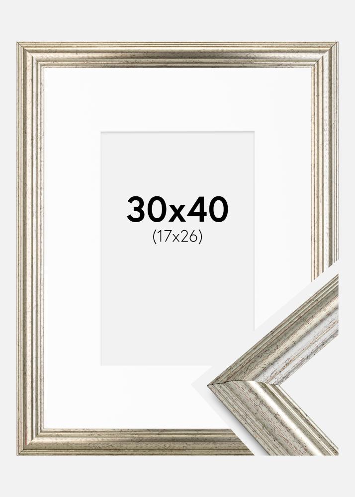 Rám Västkusten Strieborná 30x40 cm - Pasparta Biela 18x27 cm
