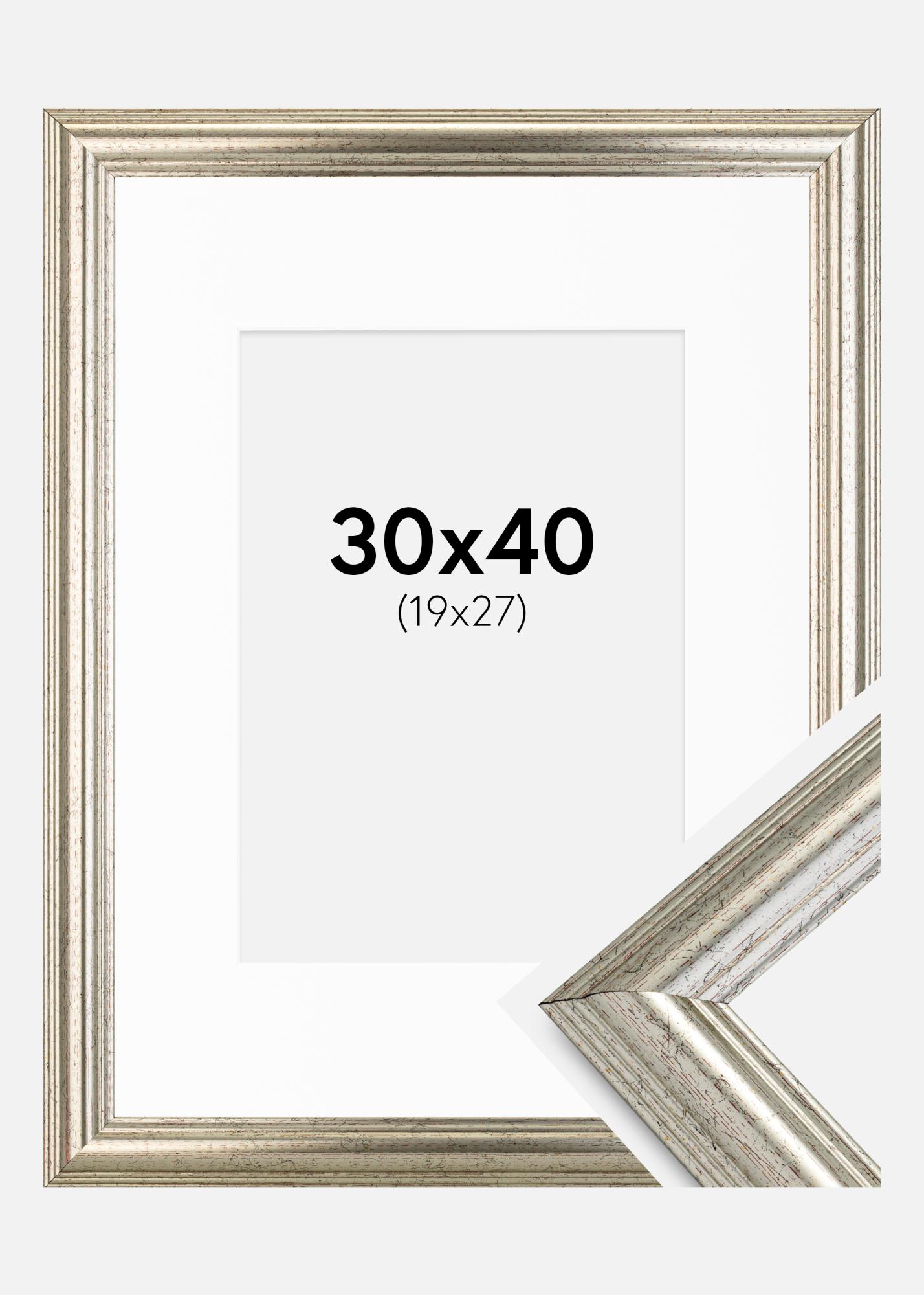 Rám Västkusten Strieborná 30x40 cm - Pasparta Biela 20x28 cm