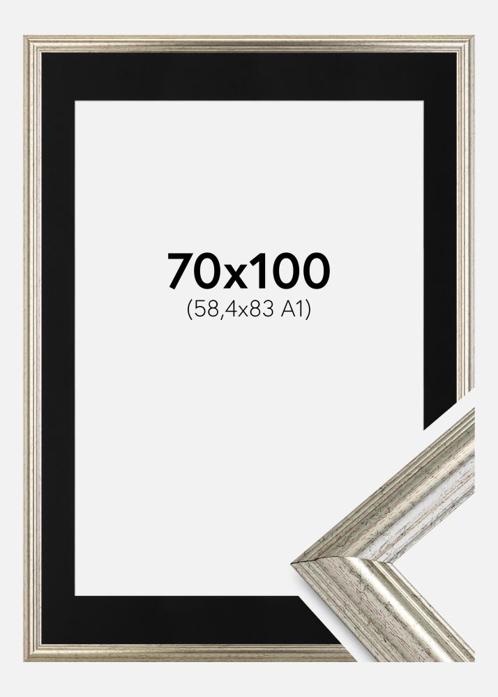 Dajte svojim najväčším umeleckým dielam rámovanie, ktoré si zaslúžia, s naším elegantným strieborným rámom na obrazy, ideálnym pre obrázky vo formáte A1 (59,4x84 cm). Lesklý povrch a čierne paspartu vytvárajú sofistikovaný kontrast, ktorý zvýrazňuje váš motív a dodáva profesionálny nádych. S paspartu získava váš obrázok extra hĺbku a zameranie, zároveň ho chráni pred dotykom so sklom.