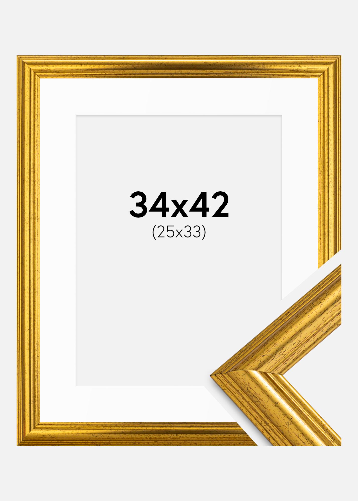 Premeňte svoje obrázky na umelecké diela s naším elegantným rámom v zlate, kompletným s bielym paspartom. Táto rám je navrhnutý tak, aby pasoval na obrázky vo veľkosti 26x34 cm a poskytuje sofistikované orámovanie, ktoré zvýrazňuje motív štýlovým spôsobom.