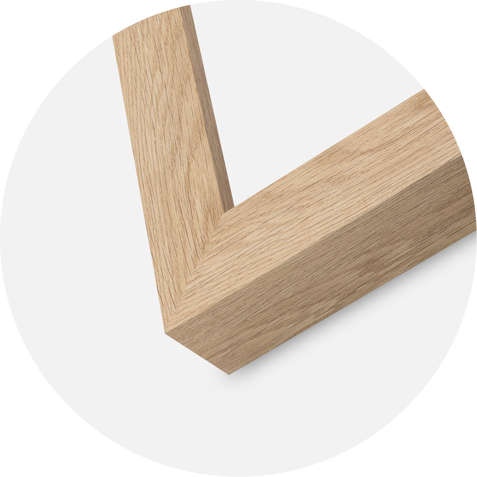 Rám na obrazy má 40 mm širokú lištu a hĺbku 35 mm, čo mu dodáva robustný dojem, no zároveň si zachováva eleganciu. Je vyrobený z dreva a ponúka prirodzenú dubovú farbu, ktorá je nadčasová a dekoratívna. Vďaka tomu je ideálny na zvýraznenie fotografií aj plagátov v rôznych štýloch interiéru – od moderného škandinávskeho až po klasickejšie domovy.