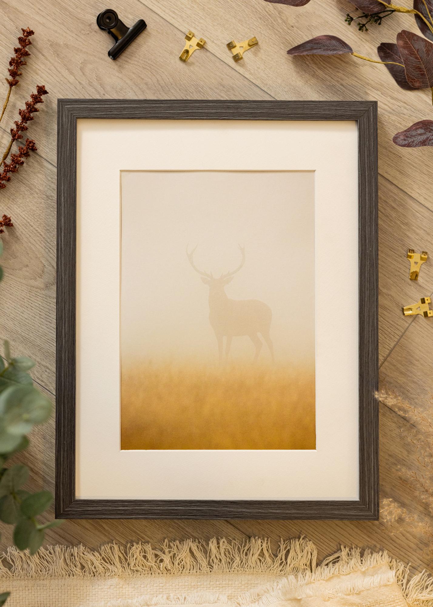 Wood Selection Grey I je rám na obrazy na mieru, ktorý ponúka dokonalú kombináciu štýlu a funkčnosti. S jeho sivou farbou a tmavou morenou drevenou úpravou pridáva Táto rám do vašich obrázkov a umeleckých diel sofistikovaný dotyk. Prírodná štruktúra dreva prechádza pozdĺž okrajov a vytvára vizuálnu dynamiku, ktorá upúta pohľad.