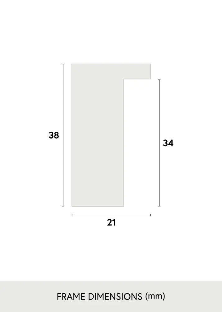 Rám má 21 mm širokú rámovú lištu a hĺbku 38 mm, čo poskytuje stabilný a robustný pocit bez toho, aby prekrýval motív. Rohy a úzky profil prispievajú k modernej a elegantnej konštrukcii, ktorá sa jednoducho integruje do rôznych dekoratívnych štýlov. Jemné farebné prechody v kresbe navyše pridávajú hĺbku a variabilitu, čo robí každý obrazový rám jedinečným.
