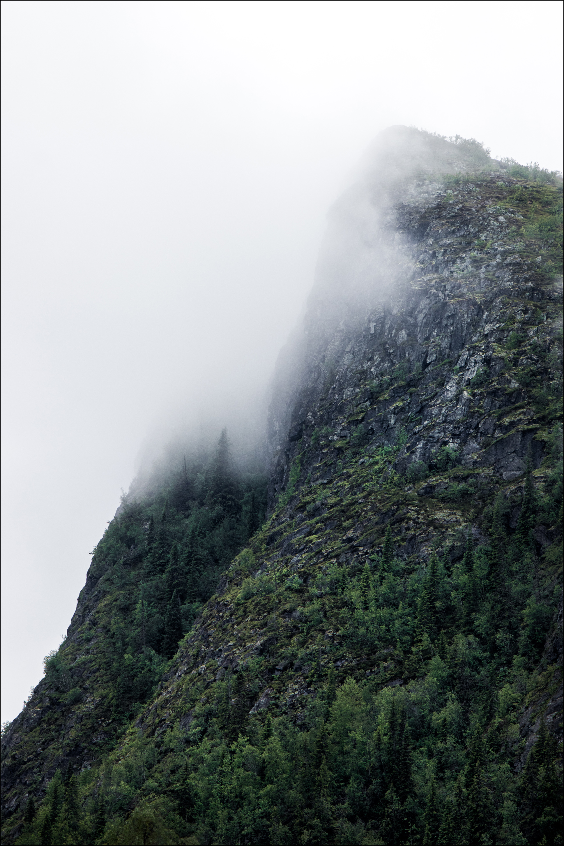 Veľkolepý plagát s bočnou stranou hory a stromami. Vrchol hory je čiastočne zahalený oblakom, čo prispieva k vytvoreniu tajomnej atmosféry. Predstavte si, že leziete na vrchol, aby ste videli výhľad, keď ho budete mať zavesený doma.
