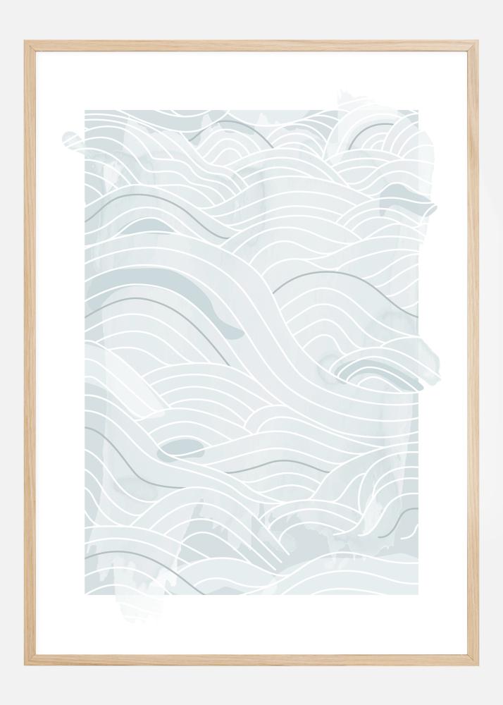 Námornický plagát s jemnými modrými abstraktnými čiarami a vlnami na bielom pozadí. Rôzne odtiene modrej a rôzne hrúbky čiar sú skombinované na vytvorenie týchto vlniacich sa vĺn po celej ploche. Nechajte svoje myšlienky blúdiť a nechajte sa unášať týmto jemným námornickým vzorom.