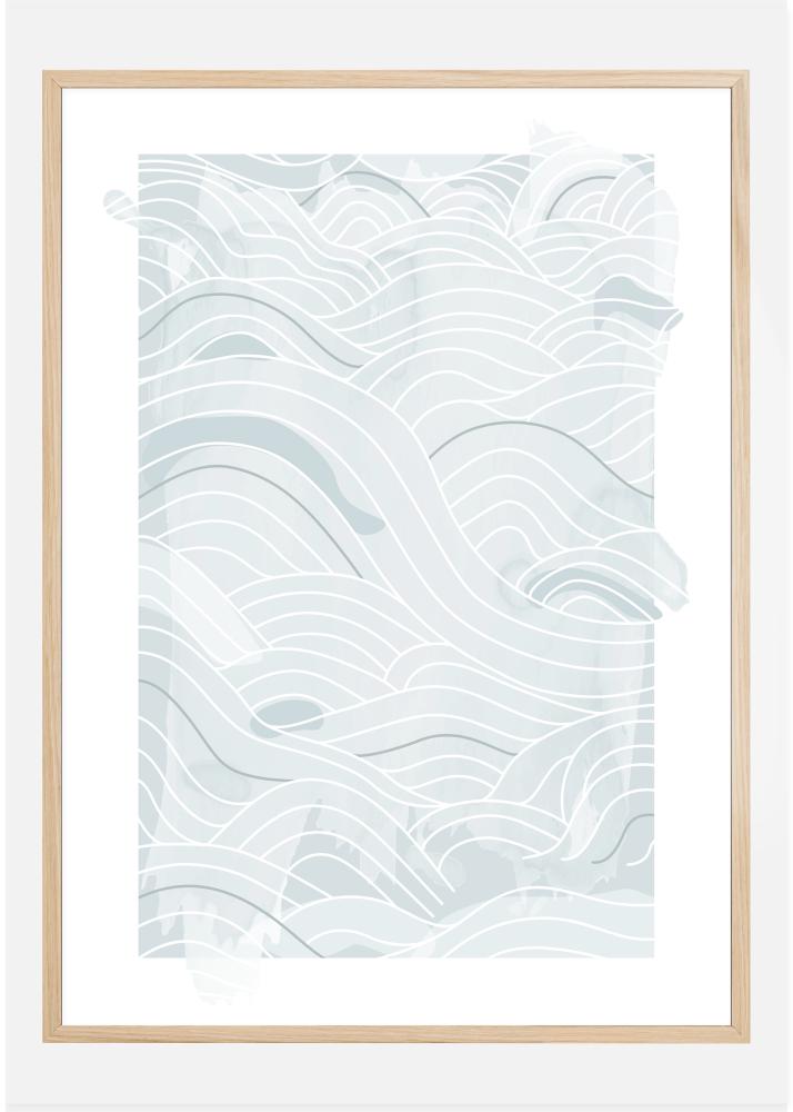 Morský plagát s jemnými modrými abstraktnými líniami a vlnami na bielom pozadí. Rôzne odtiene modrej a rôzne hrúbky čiar sa kombinujú na vytvorenie týchto vlnitých vĺn cez stranu. Nechajte svoje myšlienky túlať sa a nechajte sa unášať týmto jemným morským vzorom.