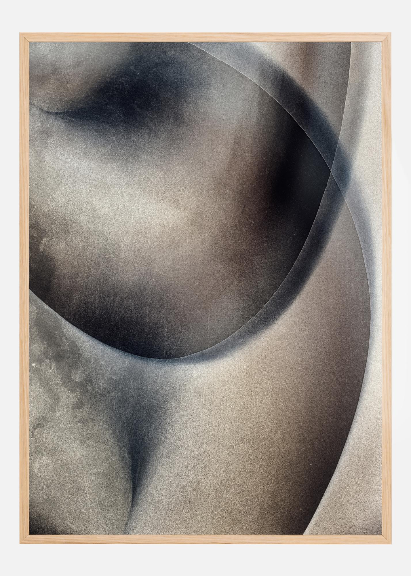 Plagát so živou kresbou detailu ženských bokov a trupu. Tento úchvatný abstraktný obraz má jemné nástreky modrej a fialovej farby, aby vykreslil línie tela. Ďalšie silné prekryté tvary spôsobujú, že niektoré oblasti vyniknú. Užite si tento abstraktný obraz tela, keď visí vo vašom domove.