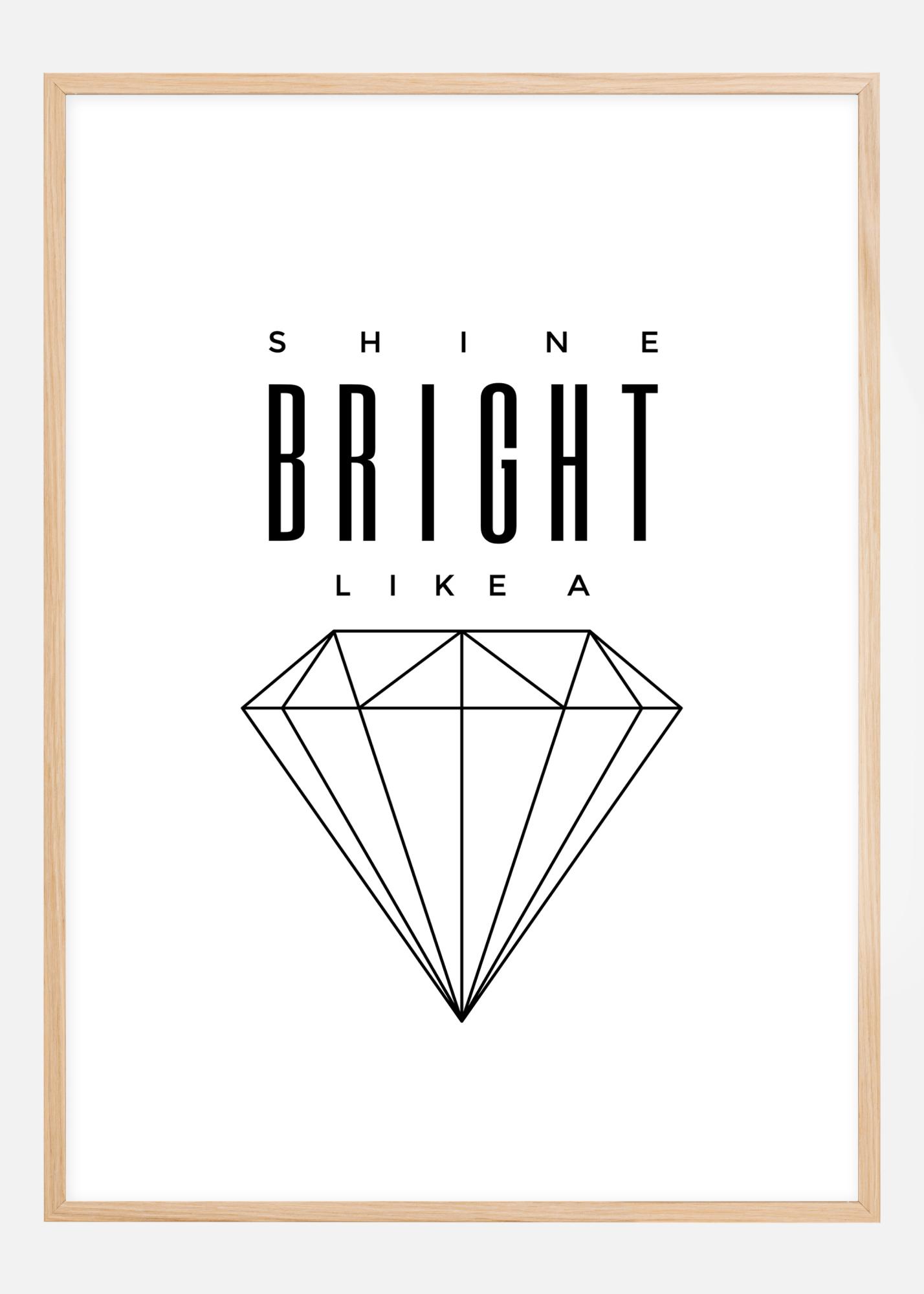 Pripomeňte si, že vždy treba pokračovať v žiarení ako diamant, aj keď sa vo vnútri cítite unavení. Tento štýlový plagát nemusíte byť fanúšikom Rihanny, aby ste ho milovali. Plagát má čistý, čiernobiely dizajn s grafickým diamantom v strede. Nad diamantom je text "Shine bright lika a" vytlačený čiernymi elegantnými písmenami. Keďže plagát je k dispozícii v rade rôznych veľkostí, ľahko nájdete ten, ktorý sa hodí práve na vašu stenu. Vytvorte luxusný celok tým, že ho doplníte čiernym alebo zlatým rámom z nášho veľkého sortimentu.