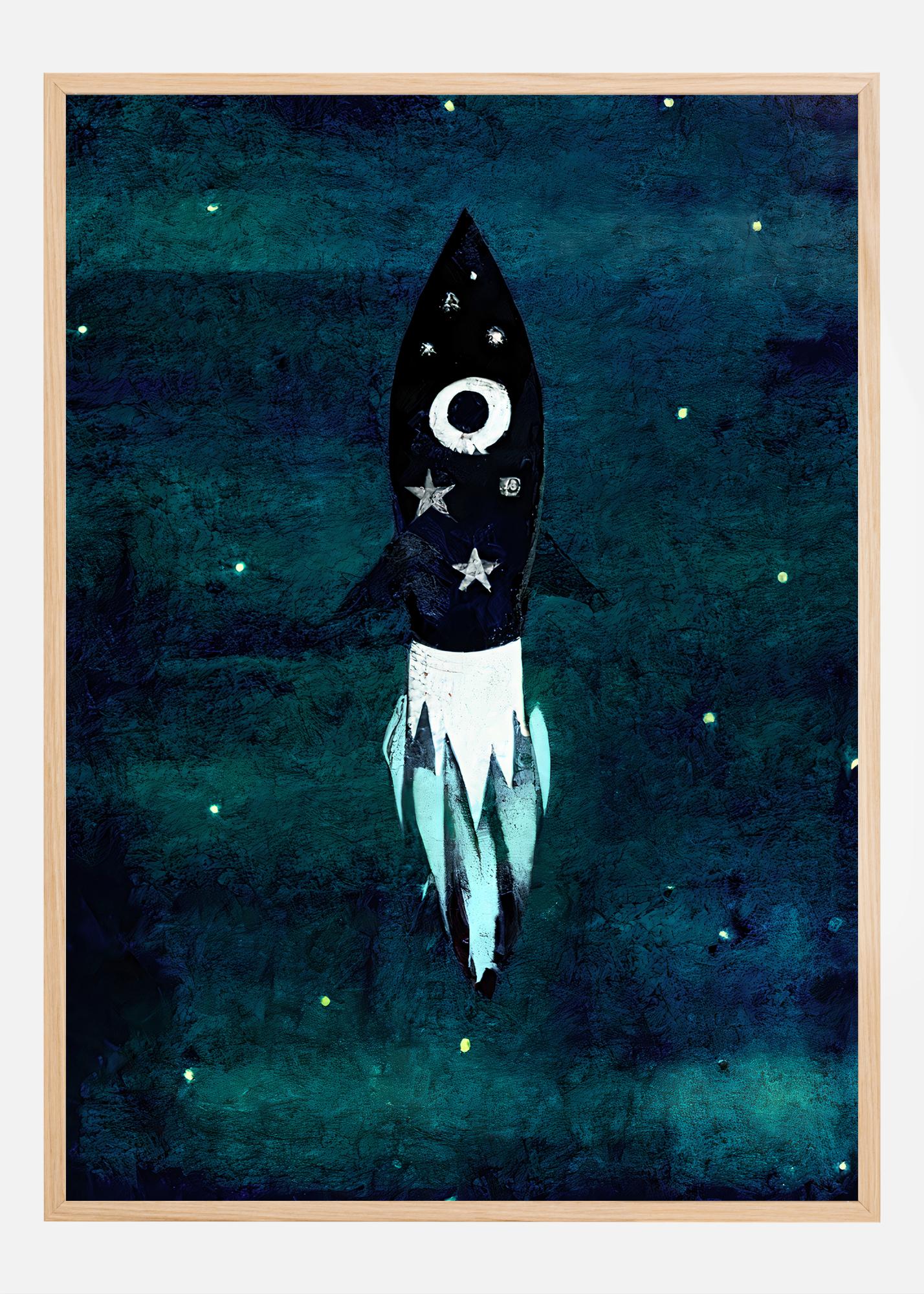 Zdôraznite hviezdnu fantáziu s týmto plagátom, ktorý zobrazuje raketu na objaviteľskej ceste farebným vesmírom. Hlboko sýta modrá pozadie je posiata svetelnými bodmi, ktoré pripomínajú hviezdy a vytvárajú ilúziu nekonečného priestoru. Samotná raketa, zdobená striebornými hviezdami a mesiacom, sa stáva symbolom ľudskej túžby po vesmírnych letoch a objavovaní neznámeho.