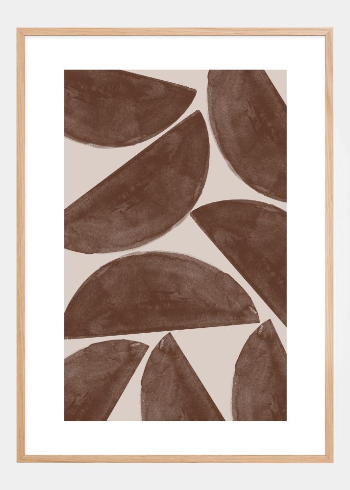 Tento plagát zvýrazňuje sériu jemne abstrahovaných tvarov, ktoré pripomínajú jednoduchú krásu prírody. S usporiadaním organických prvkov v teplých hnedých a béžových tónoch, vytvára dojem kameňov alebo listov roztrúsených v prirodzenom vzore. Táto tlač je príkladom abstraktnej umeleckej formy, ktorá je rovnako podnetná ako esteticky uspokojivá.