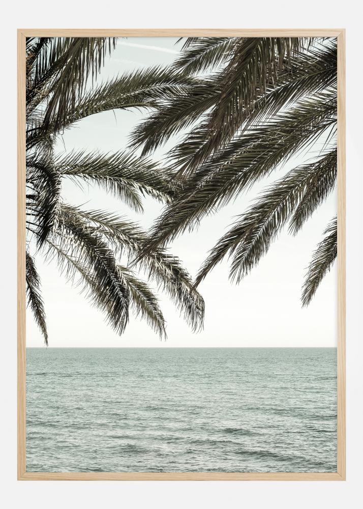 Táto plagát prináša kúsok pokojných pocitov zo života na pláži priamo do vášho domova. Palmové listy orámujú pokojný pohľad na more a oblohu nad ním tak, že zachytávajú jedinečnú krásu pobrežného krajinného obrazu. Ukludňujúca zelená farba paliem prirodzene kontrastuje s modrou farbou mora a svetlom na oblohe, čo prináša pocit harmónie a večnosti.