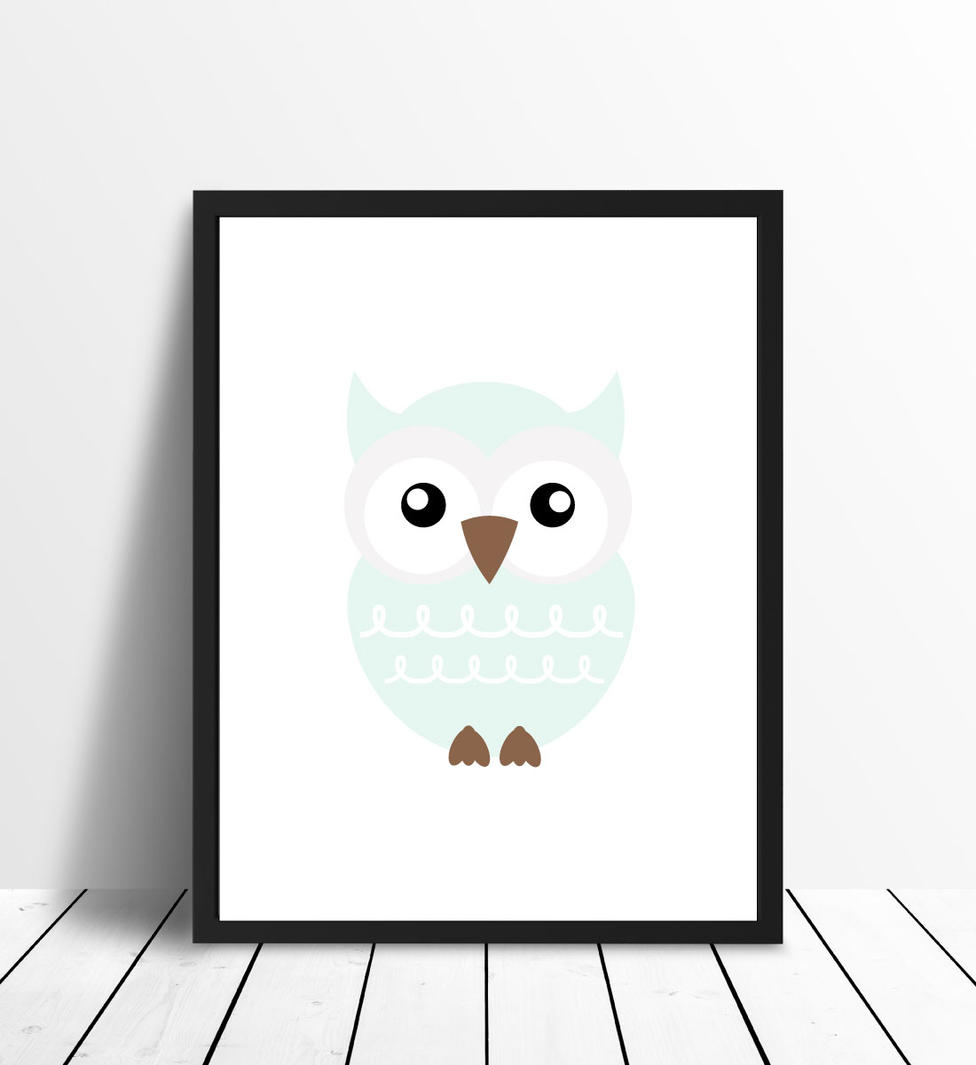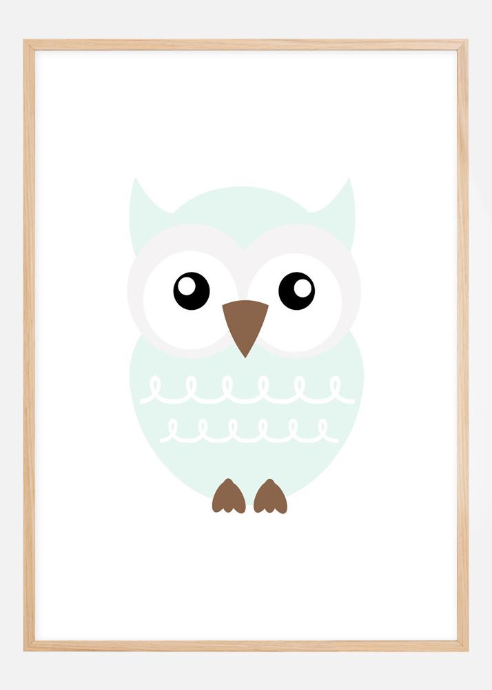 Roztomilý plagát s najobľúbenejším vtáčikom, sovou. Ilustrácia štýlizovanej ľadovomodrej sovy na bielom pozadí sa stala modernou klasikou. Motív sa hodí rovnako dobre do obývačky ako do detskej izby a vynikne najmä s interiérom, ktorý odráža farbu na obraze. Kombinujte s inými vtákmi alebo zvieratami pre divoký pocit.