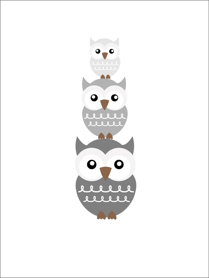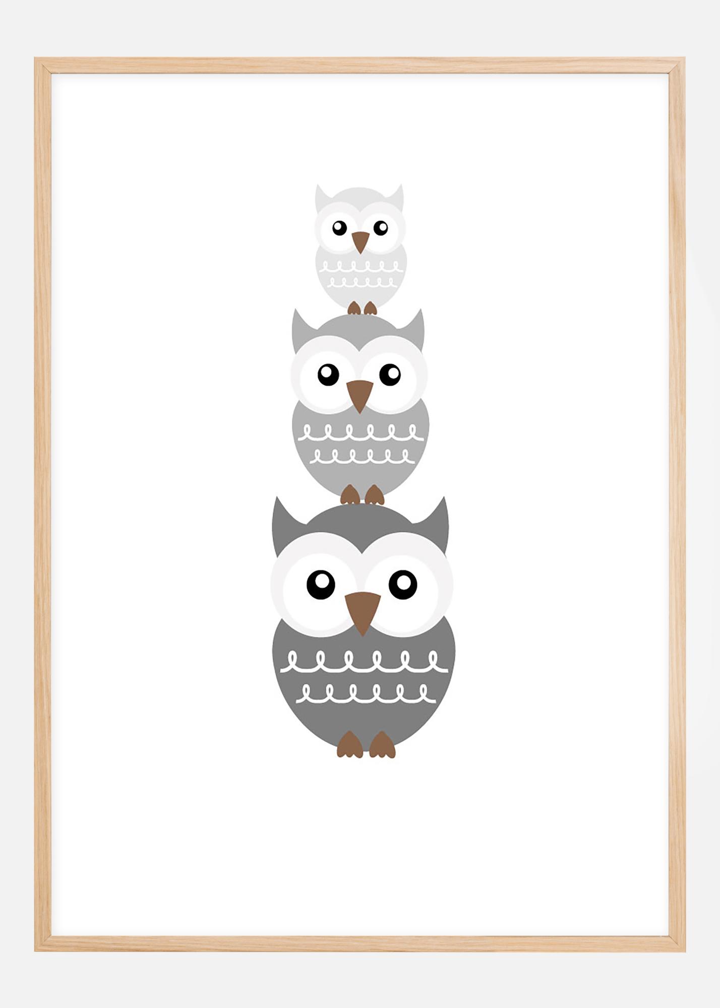 Tri je lepšie ako jedna. Umelecké dielo s vnútornou pippou číslo jeden, sovou. Ilustrácia troch štylizovaných hmlových sov naskladaných na seba na bielom pozadí sa stala modernou klasikou. Motív sa rovnako dobre hodí do obývačky ako do detskej izby a hodí sa obzvlášť dobre s dekoráciou, ktorá vyberá farbu z obrazu. Kombinujte s inými vtákmi alebo zvieratami pre divoký pocit.