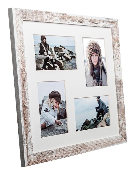 Štýlový vintage rám so širokým profilom rámu s ošúchaným vzhľadom v bielej a drevenej farbe. Poskytuje vašim obrázkom extra rozmer a je ideálny, keď chcete mať autentický vintage pocit. Kolážový rám má miesto pre 4 obrázky vo veľkosti 10x15 cm.