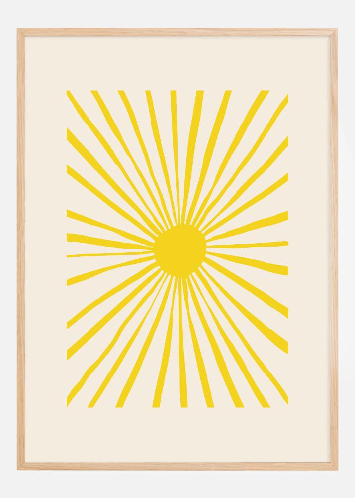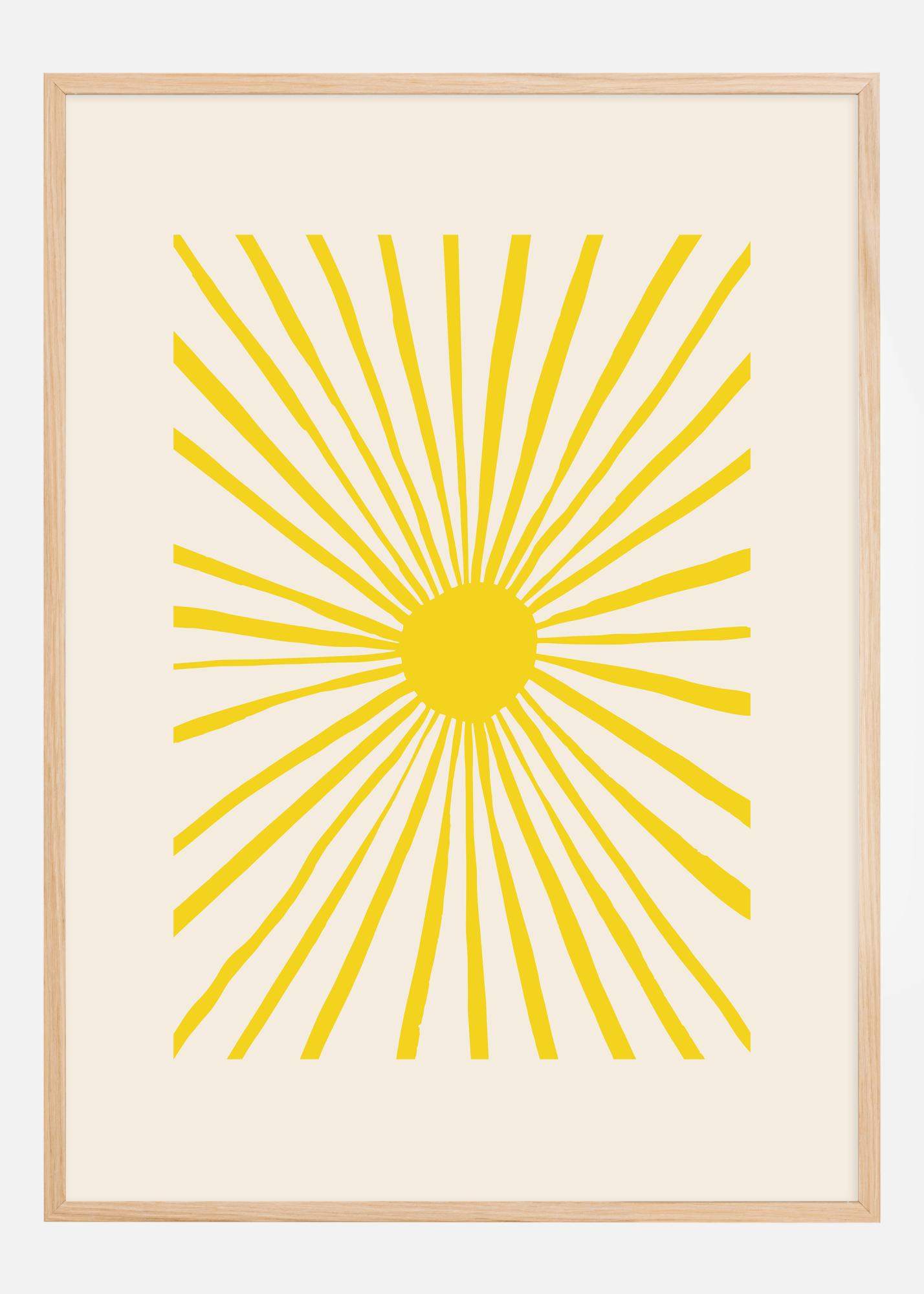 Dodajte svojej stene špliech slnečného svitu s týmto živým a energizujúcim plagátom, ktorý zachytáva podstatu žiarivého slnka. Tento minimalistický dizajn sa vyznačuje silnými a žiarivými žltými odtieňmi, ktoré vyžarujú z centrálneho bodu, čím vytvára dynamický efekt slnečných lúčov, ktoré sa šíria cez upokojujúce krémové pozadie. Tento slnečný plagát prináša pocit tepla a radosti a stáva sa okamžitým lákadlom v akejkoľvek miestnosti.