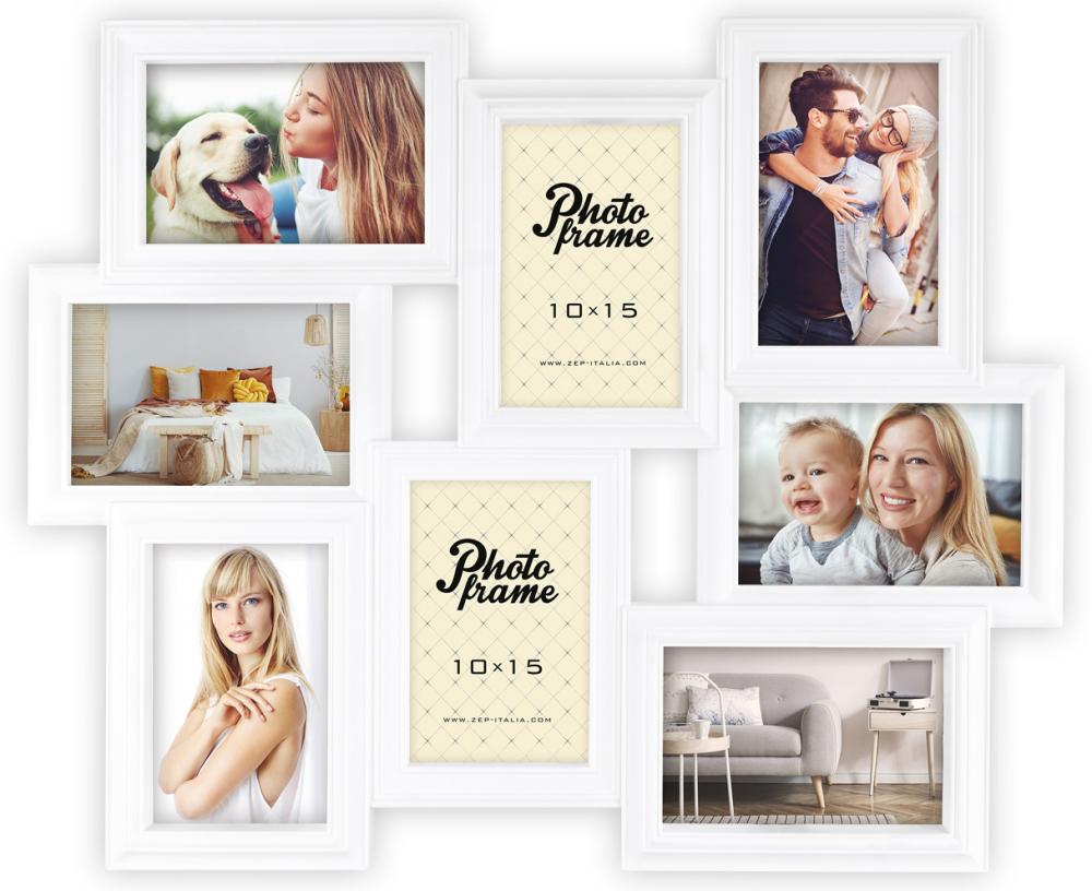 Tento pekný kolážový rám vám umožňuje jednoducho vytvoriť vlastnú fotokoláž tým, že si necháte vyvolať obľúbené fotografie a zarámujete ich! Kolážový rám pojme 8 obrázkov vo veľkosti 10x15 cm vo vertikálnom aj horizontálnom formáte. Vonkajšie rozmery kolážového rámu sú 42,5x52 cm a majú biely odtieň. Štýlový dizajn zabezpečuje, že tento kolážový rám sa hodí do mnohých rôznych domov a je ľahko zladiteľný s inými peknými nástennými dekoráciami a zariadením!