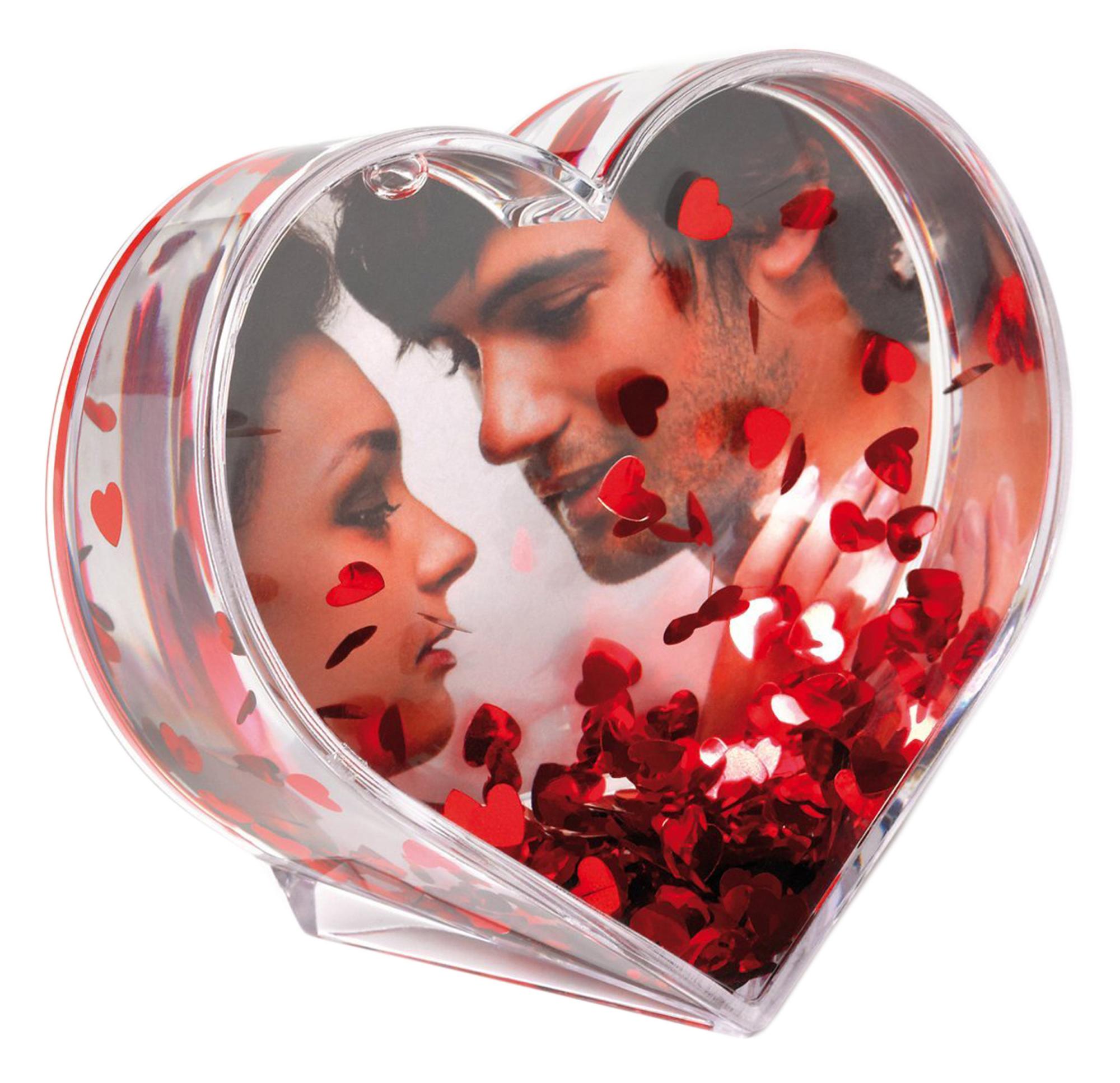 Tento rámik na fotografie v tvare srdca poskytuje vašim obrázkom veľmi romantický vzhľad. Rám je vyrobený z odolného akrylového plastu a je naplnený červenými kovovými srdiečkami, čo vytvára funkciu podobnú „snehovej guli“. Rám na fotografie má miesto pre 1 obrázok vo veľkosti 9,1x6,5 cm.