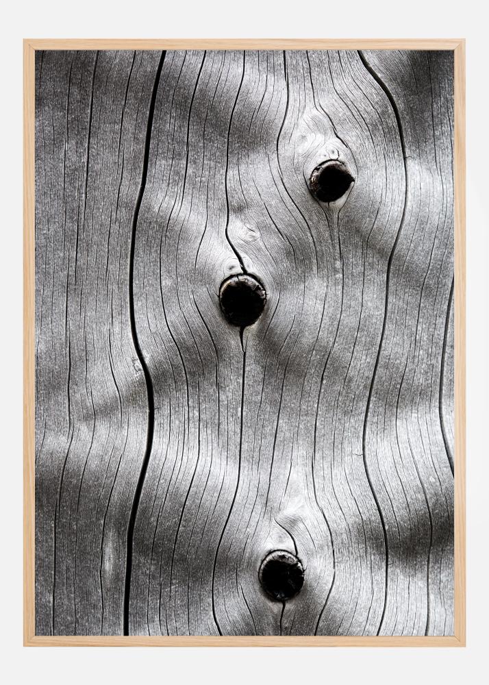 Makroplagát s kmeňom stromu s tromi dierami. Štruktúra dreva je jasne viditeľná, keď sa línie kmeňa vinú nahor. Tri tmavé diery sa otvárajú na rôznych miestach pozdĺž týchto línií a dávajú kmeňu pocit textúry. Zaveste tento obrázok na zelenú stenu, aby ste získali prirodzenejší pocit.