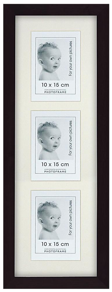Začni výber rámu »Trendline Čierny Koláž má priestor pre 3 obrázky vo formáte 10x15 cm. Vonkajšie rozmery rámu sú 21x59 cm. Rám má široký profil 25 mm, čo priťahuje pohľad na motív.