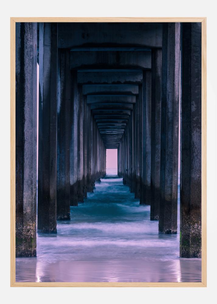 Tmavý plagát so chodbou vedúcou k svetlu na konci tunela. Hrubé tmavomodré stĺpy lemujú svetlomodrý chodník, aj keď strop nad ním je tiež dosť tmavý a hrozivý. Nasledujte svetlejšiu cestu, aby ste dosiahli jasné svetlo v diaľke a dodali hĺbku aj priestoru.