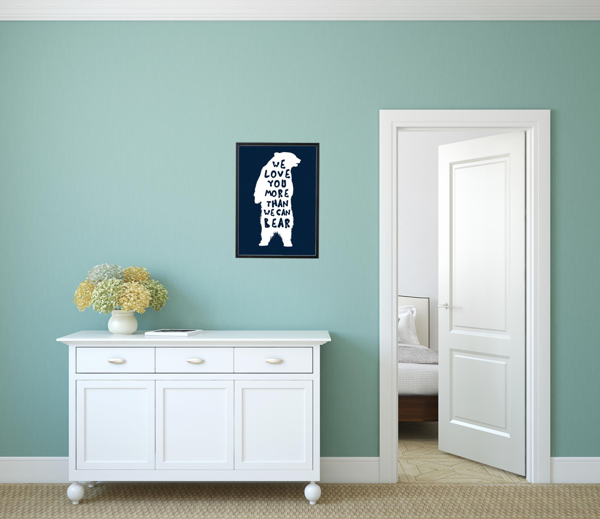 Nápaditý a zároveň láskyplný plagát, ktorý je vhodný pre tých, čo majú obzvlášť radi medvede. Grafický výtlačok je pekný darček pre niekoho, koho si chcete vážiť. Plagát má siluetu bieleho medveďa na tmavom pozadí a umelecký biely font s citátom. Zarámujte plagát do pekného a štýlového rámu, ktorý sa hodí k ostatnému zariadeniu, aby ste vytvorili celkový dojem v prostredí.