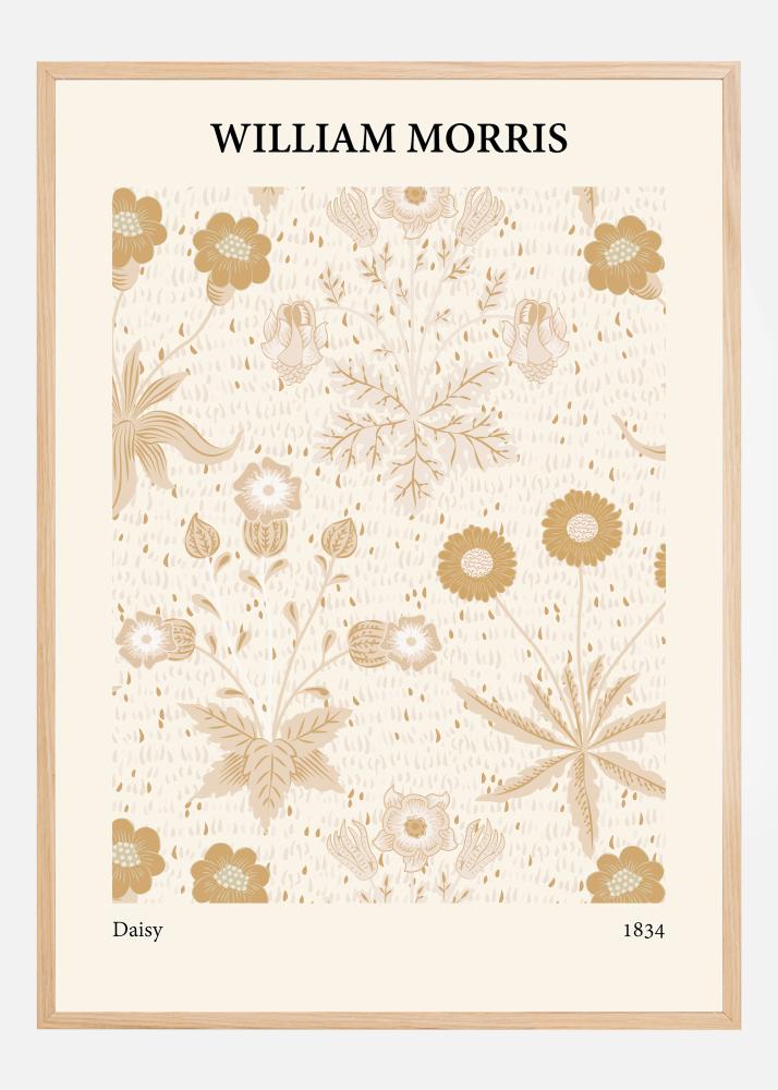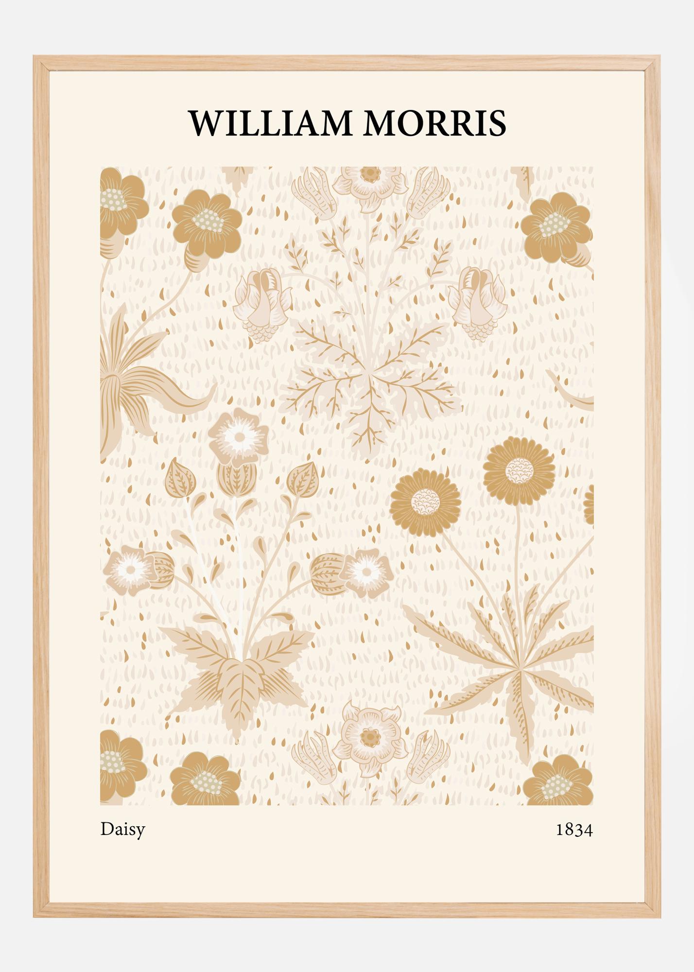 Tento delikátny a štýlový plagát zobrazuje klasický dizajn od Williama Morrisa, známy pre svoju nadčasovú estetiku a svoje miesto v dejinách umenia. Vzor pozostáva z harmonickej zbierky kvetov a vegetácie, prezentovanej v mäkkej a prírodnej farebnej palete. Dizajn zdôrazňuje Morrisovu lásku k prírode s detailnými zobrazeniami sedmokrások (margaréty), nezábudok a iných botanických prvkov, ktorých umiestnenie na papieri vytvára pokojný a vyvážený dojem. Farby, ktoré dominujú motívu, sú odtiene béžovej, krémovo bielej a rôzne hnedé tóny, ktoré spoločne prinášajú teplý a vítajúci pocit do akejkoľvek miestnosti.