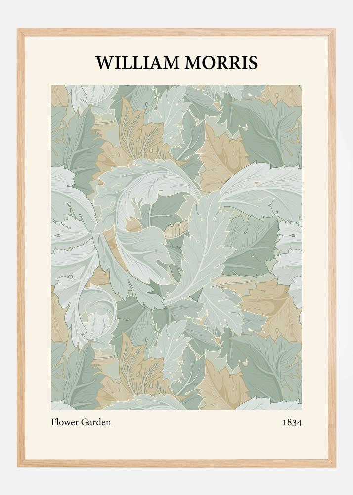 Táto elegantná a pútavá plaketa je poctou Williamovi Morrisovi a jeho nezabudnuteľnému príspevku k dizajnu a umeniu. S motívom "Kvetinová záhrada" predstavuje tento tlač sofistikovanú kompozíciu lístia a kvetinových tvarov, ktoré sa prepletajú vo farebnej palete upokojujúcich modrozelených a teplých béžových tónov. Každý prvok je navrhnutý s Morrisovou charakteristickou detailnosťou, ktorá vytvára pocit hĺbky a zložitosti, ktorý možno oceniť pri každom pohľade.