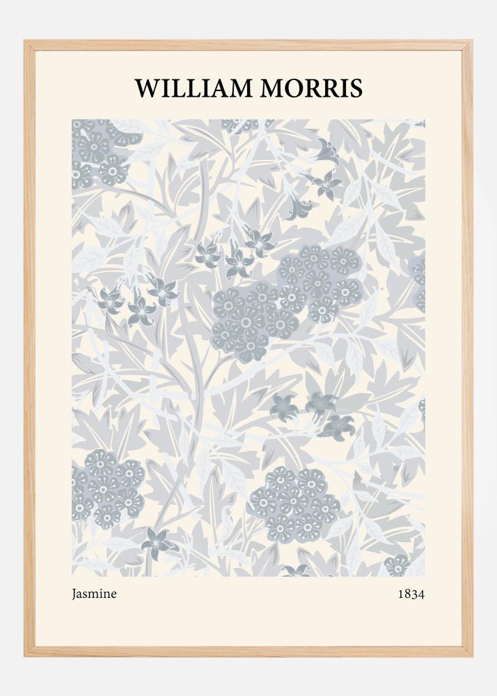 Tento štýlový a upokojujúci plagát od Williama Morrisa s názvom "Jasmine" vyžaruje pocit pokoja a čistoty. Vzor je bohatým stvárnením kvitnúcej záhrady s jazmínovými kvetmi a listami v odtieňoch bledomodrej a sivej, ktoré sú krásne umiestnené proti jasnému a upokojujúcemu krémovému pozadiu. Táto tlač je poctou Morrisovej láske k prírode a jeho schopnosti zachytiť jej krásu vo svojich vzoroch.