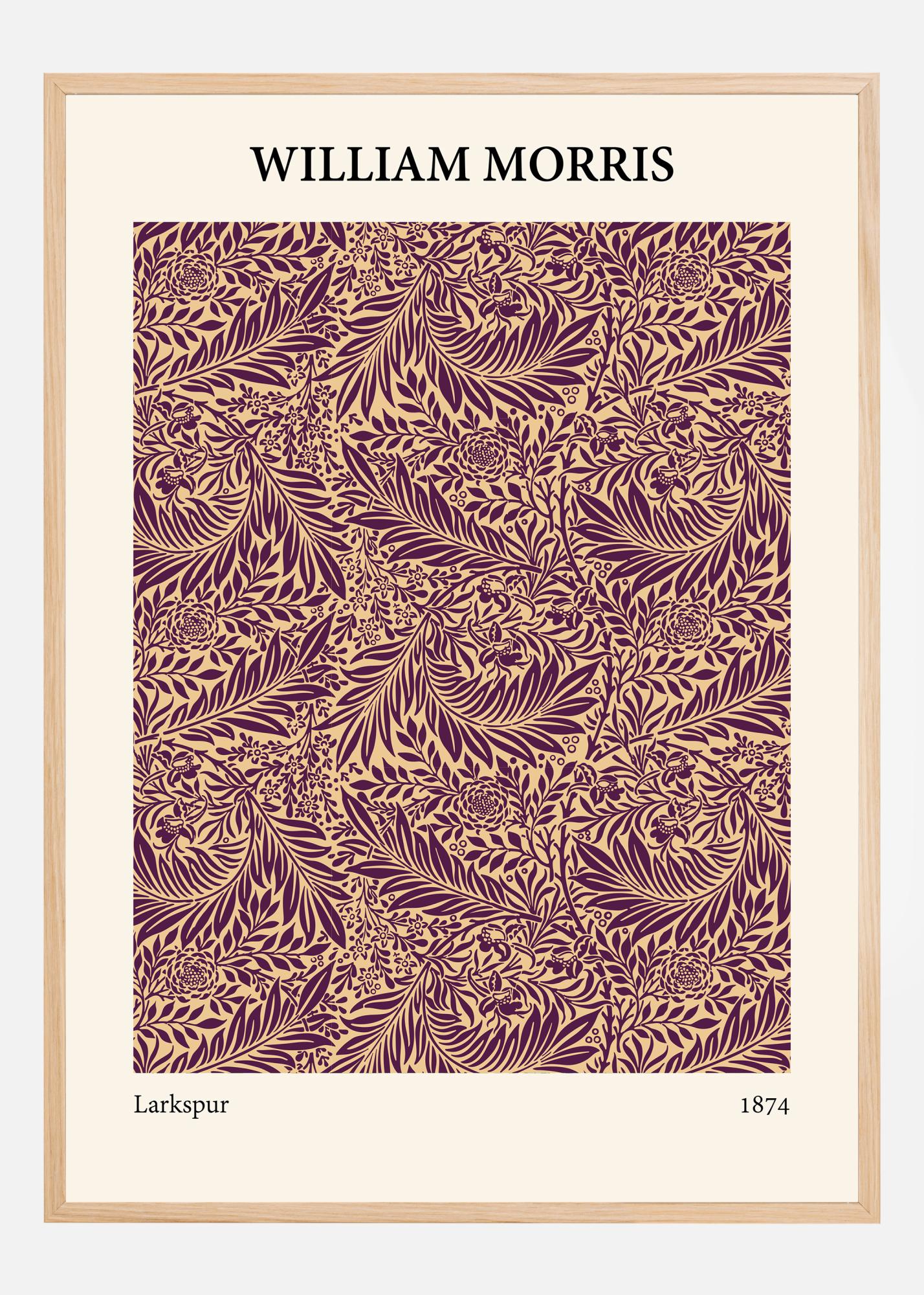 Tento odvážny a fascinujúci vzor Williama Morrisa je plagát, ktorý oživuje klasický dizajn "Larkspur" z roku 1874. S výraznou paletou vínovej a béžovej farby zachytáva táto tlač jadro Morrisovej lásky k prírode a vzorom. Jeho majstrovská práca s formou a farbou zdôrazňuje každý detail lístia a kvetov, vďaka čomu plagát vyniká ako významný dekoratívny prvok.