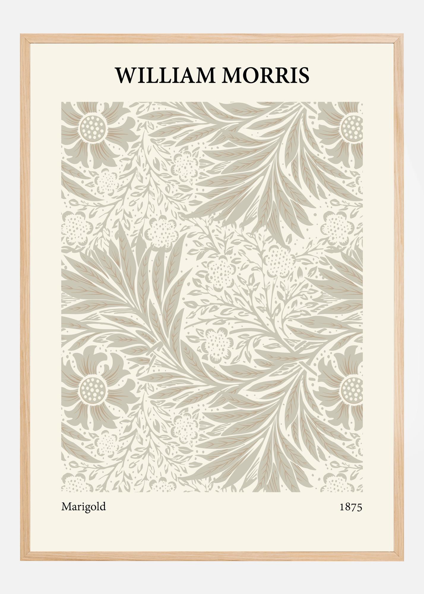 Tento plagát zobrazuje nadčasový vzor "Marigold" od Williama Morrisa z roku 1875. Je to pútavé zobrazenie Morrisovho zručného využitia tvarov a prvkov inšpirovaných prírodou, ktoré sa prepletajú do harmonického vzoru. Dizajn plagátu je vynikajúcim príkladom filozofie hnutia Arts and Crafts, kde je krása remeselnej práce a prirodzeného sveta povýšená na umeleckú formu.