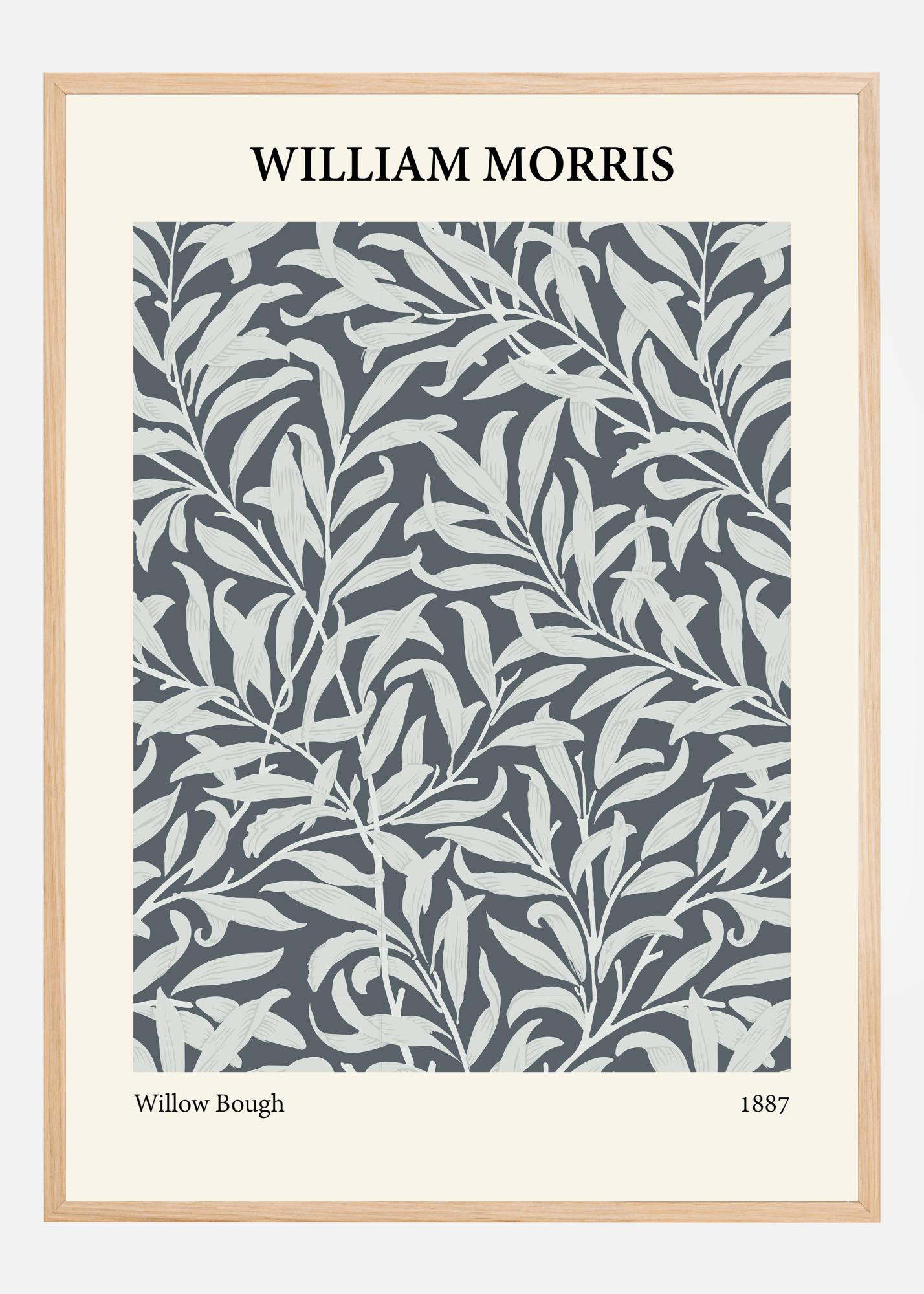 Tento elegantný plagát zobrazuje známy vzor "Willow Bough" od Williama Morrisa z roku 1887, vzor, ktorý naďalej fascinuje svojím nadčasovým dizajnom. Má sofistikovanú paletu hlbokých modrých a svetlých sivých odtieňov, čo vytvára pocit modernosti a klasickej elegancie. Každý list vŕby je vykreslený s precíznosťou a láskou k detailom, ktoré Morrisovi priniesli slávu.
